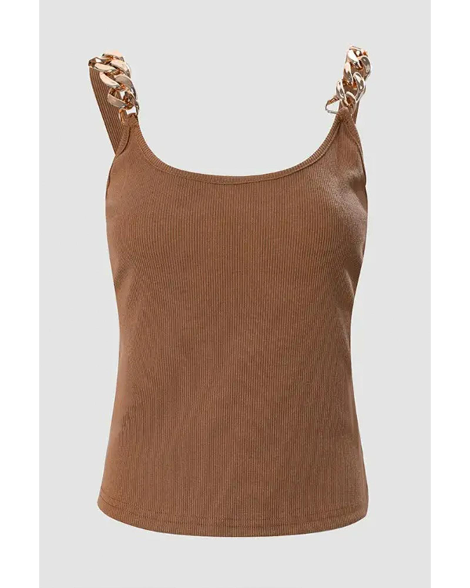 Brown Gold Chain Straps Rib Knit Tank Top – S