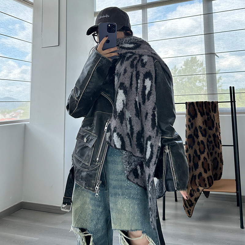 Brown Leopard Luxurious Thick Faux Cashmere Knitted Shawl – Versatile 55 x 210 cm Winter Scarf