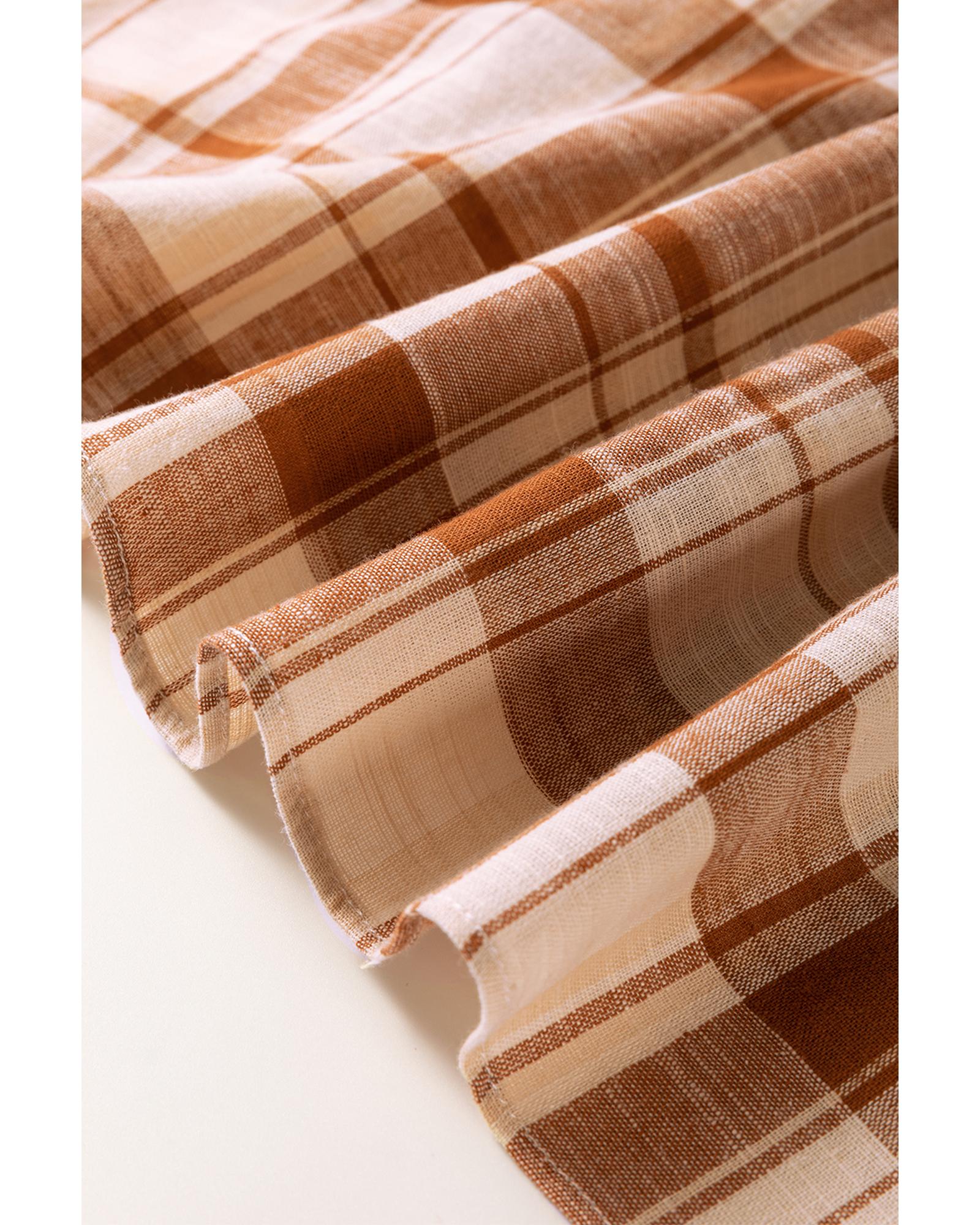 Brown Plaid Print Side Pockets Frilled Babydoll Mini Dress - M Original price was: $79.99.Current price is: $43.99.