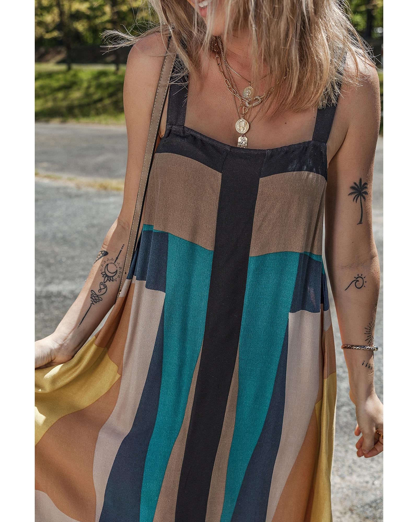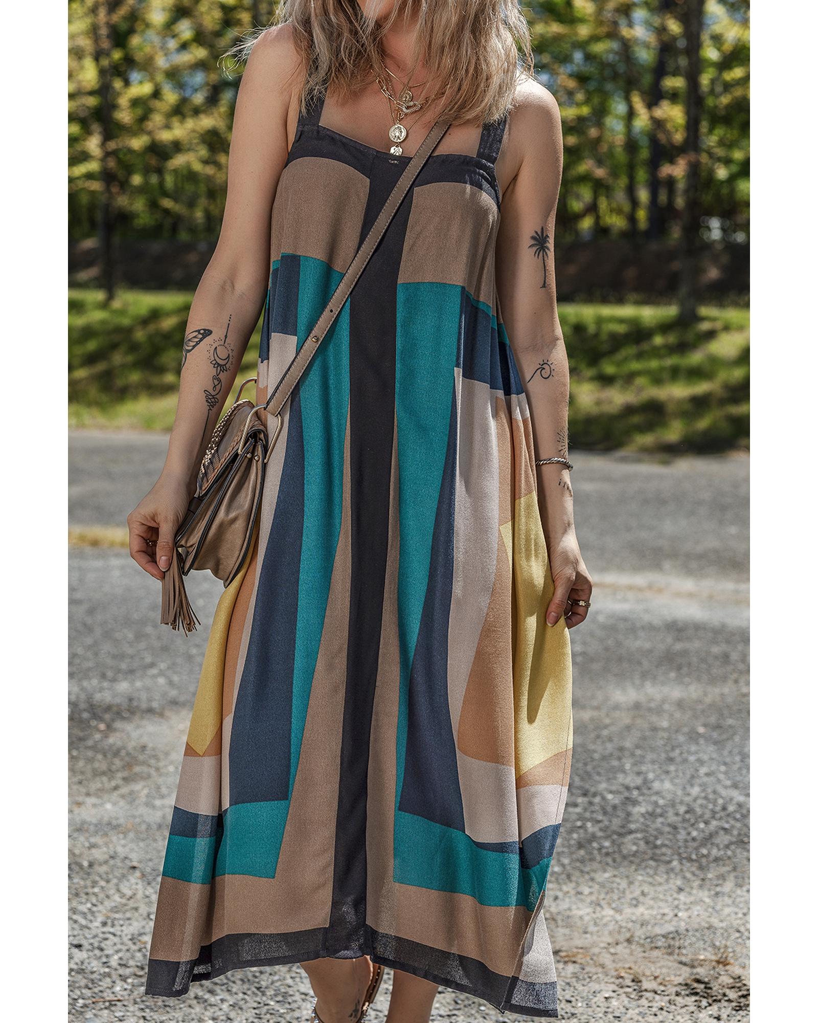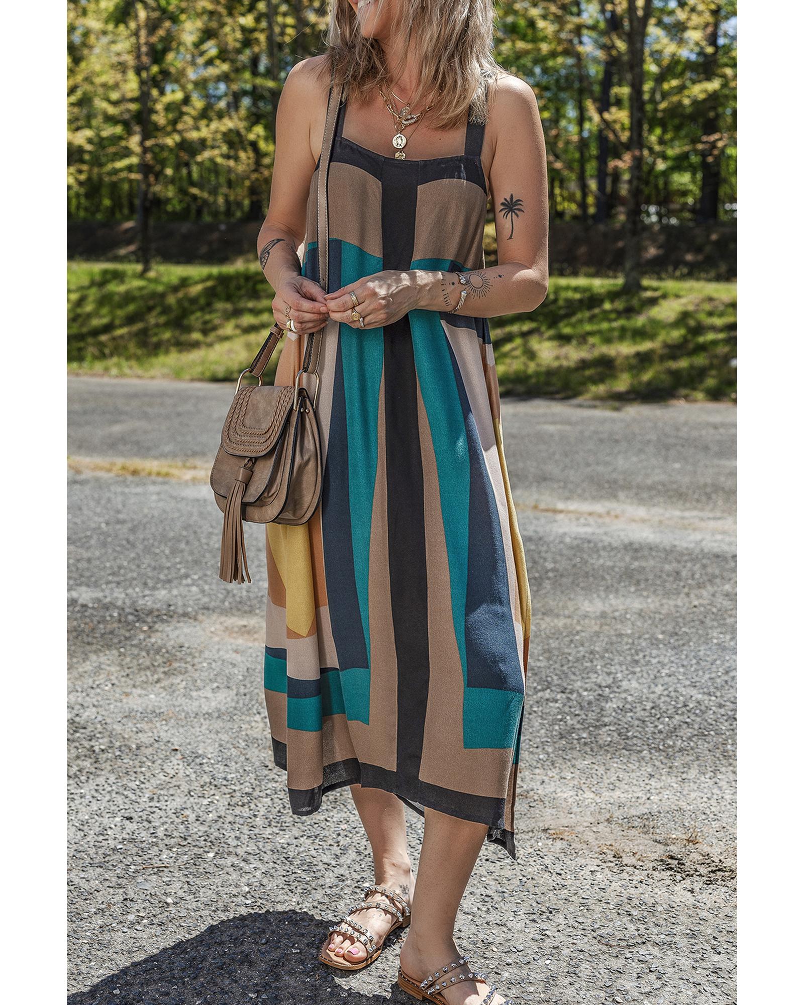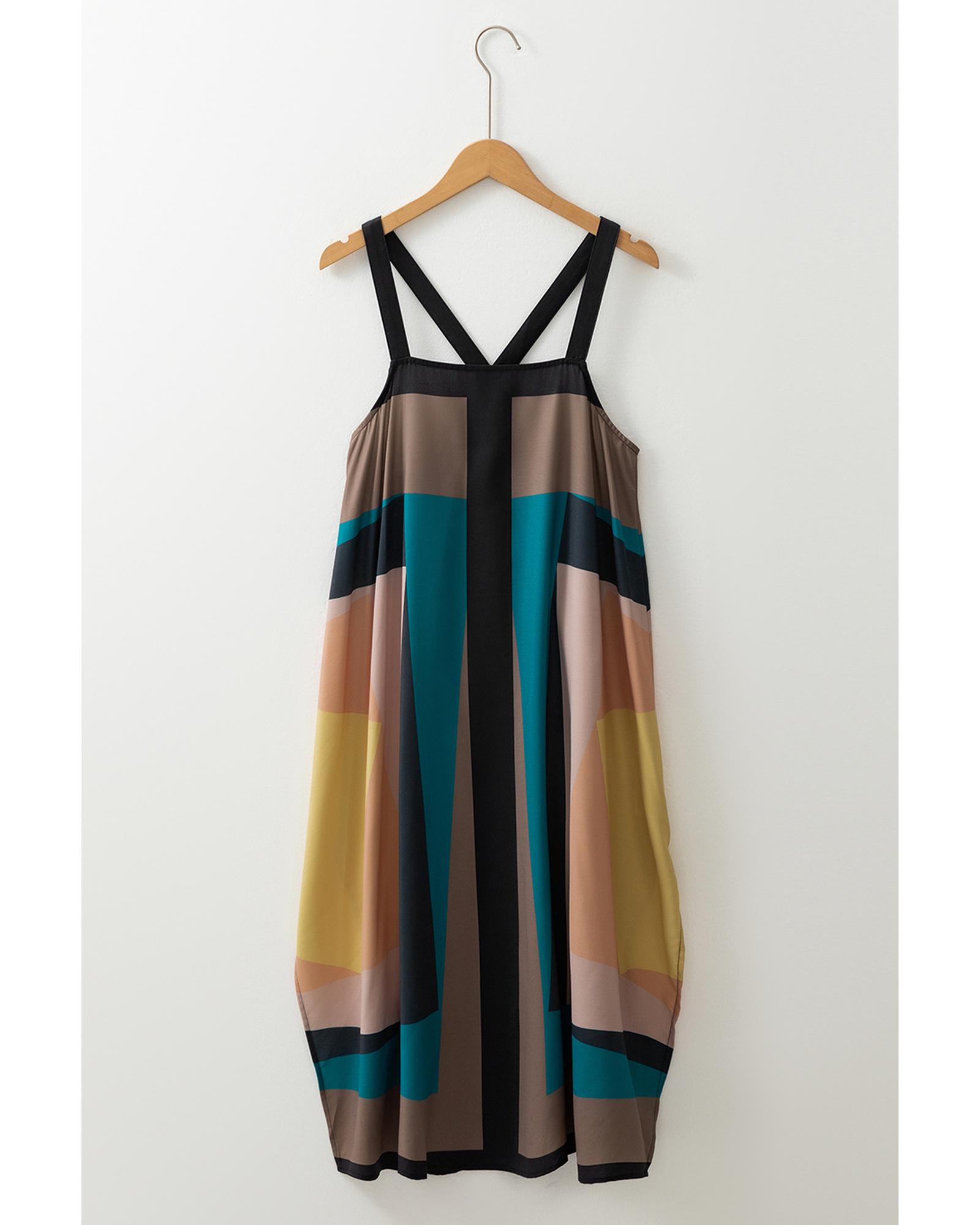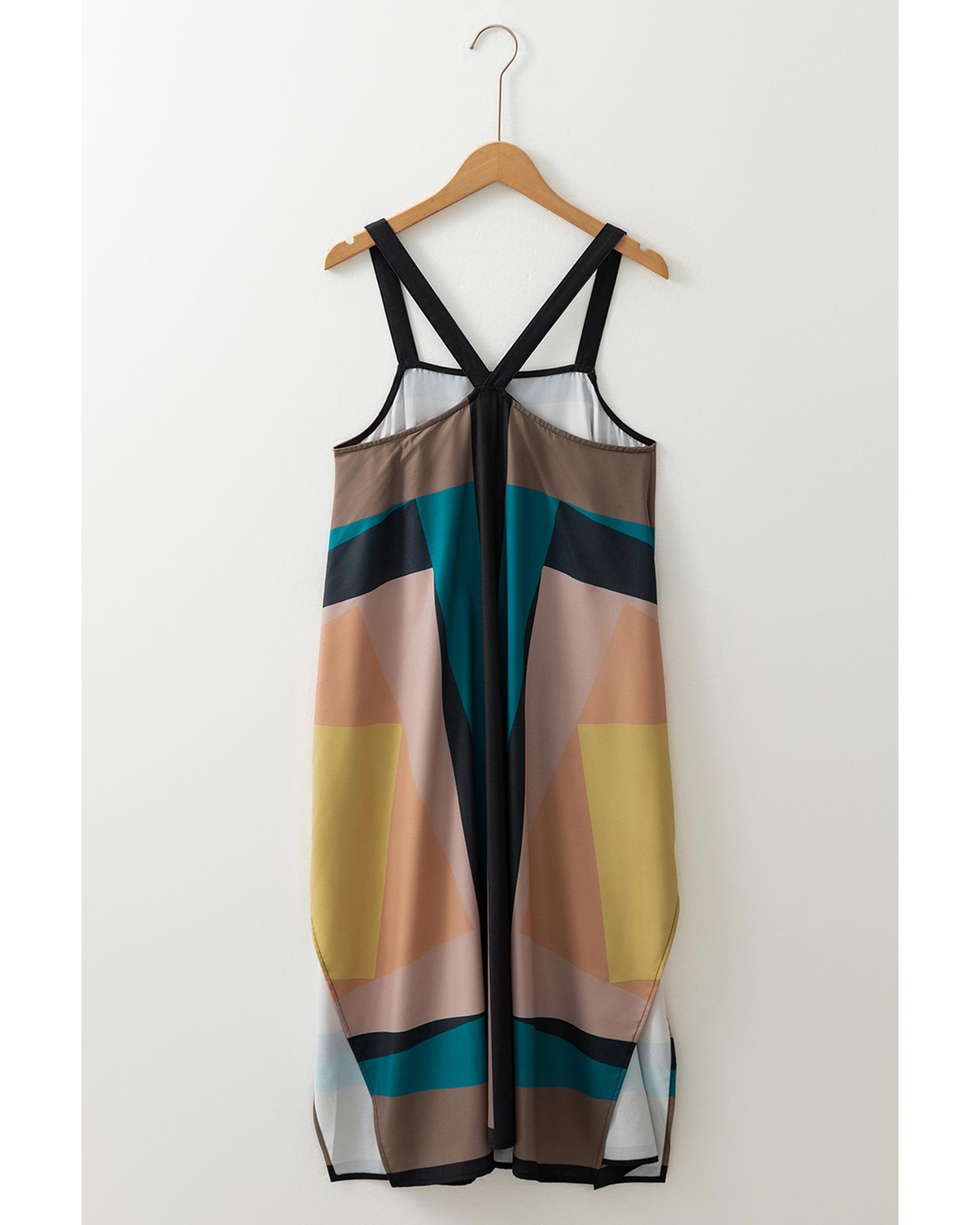 Brown Retro Geometric Printed Y Back Sleeveless Dress – L