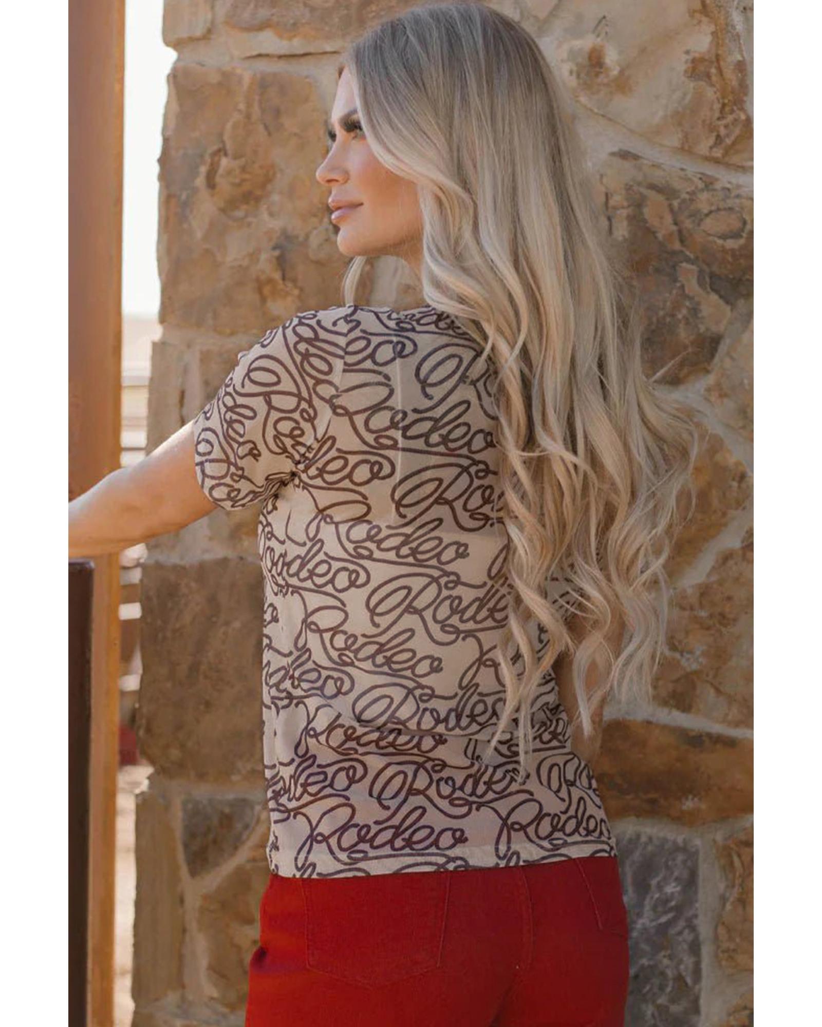Brown Rodeo Print Round Neck Slim Fit Mesh T Shirt – XL
