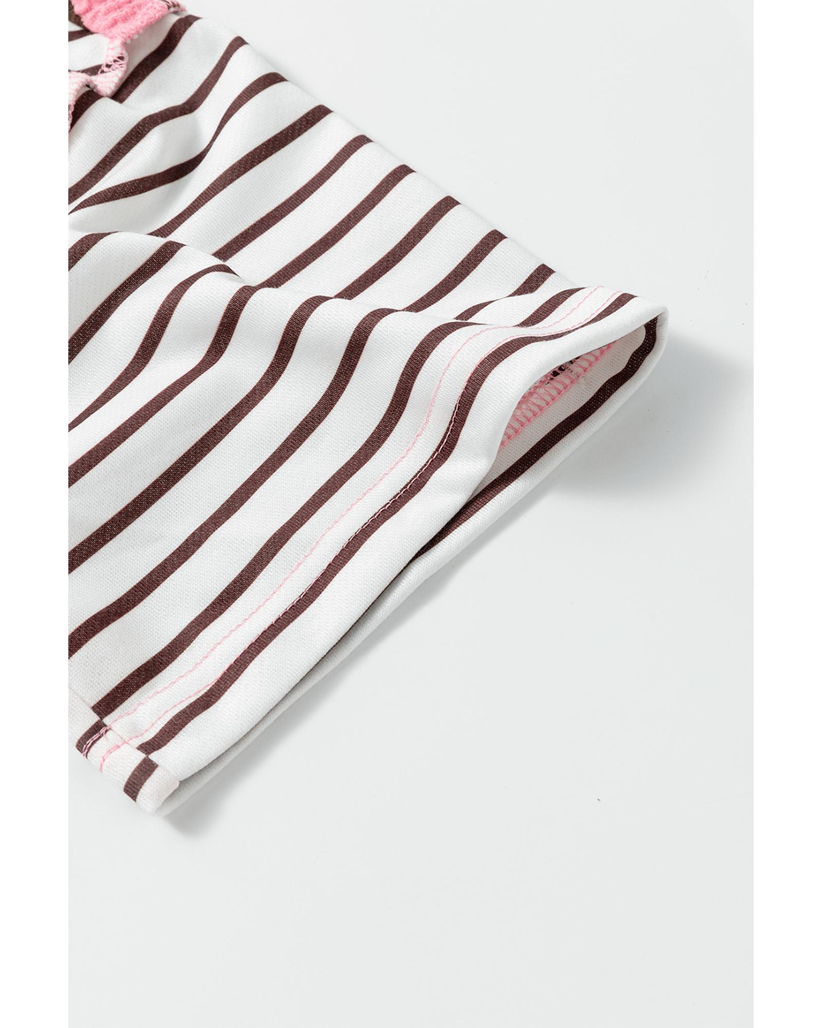 - Brown Stripe Striped Textured Patchwork Buttoned T
