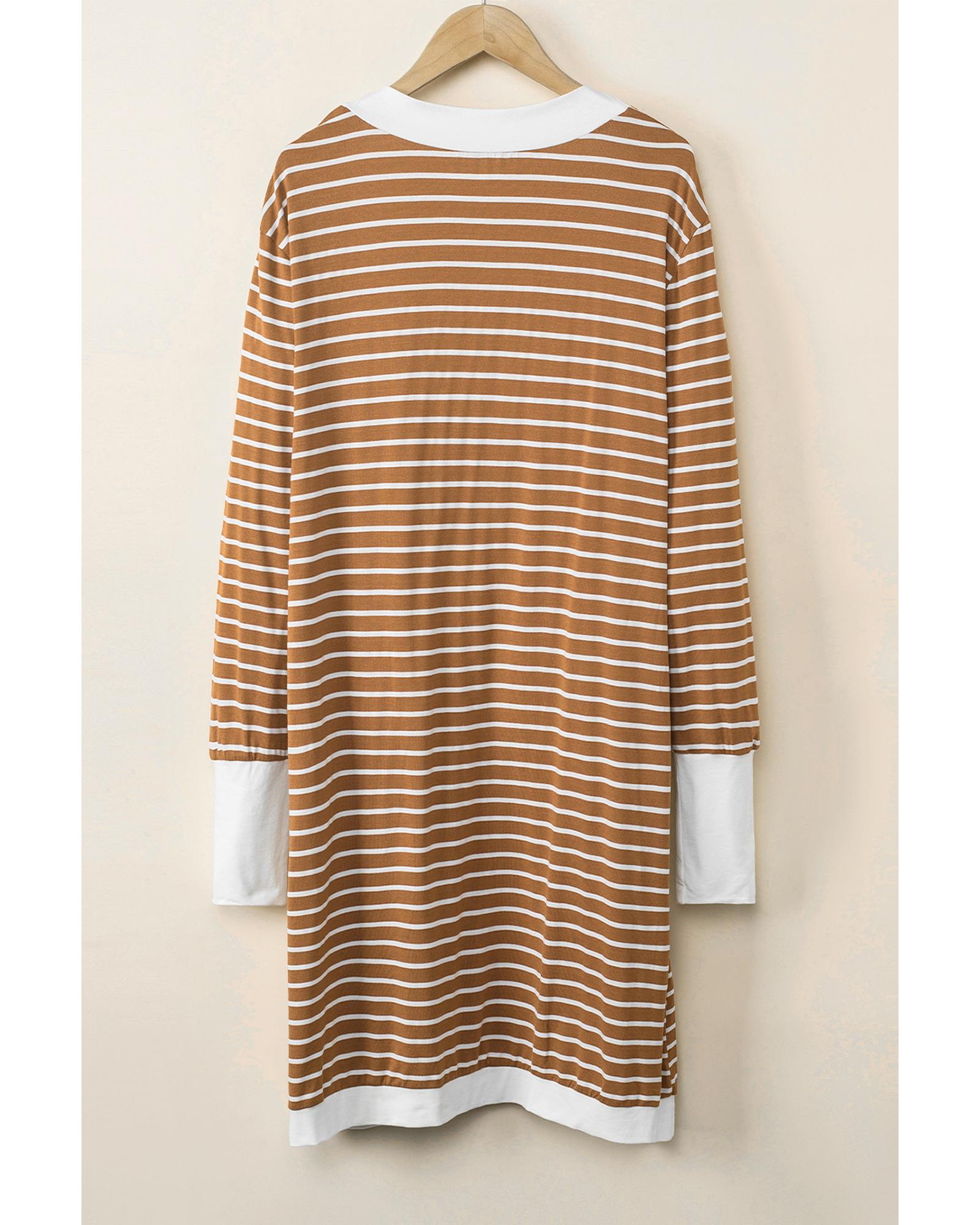 Brown Striped Side Pockets Open Front Cardigan – XL