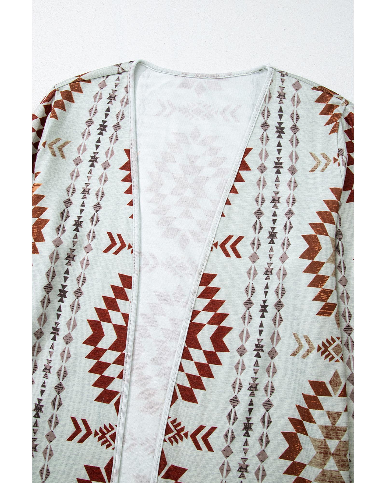 Brown Western Aztec Printed Open Front Long Cardigan – M