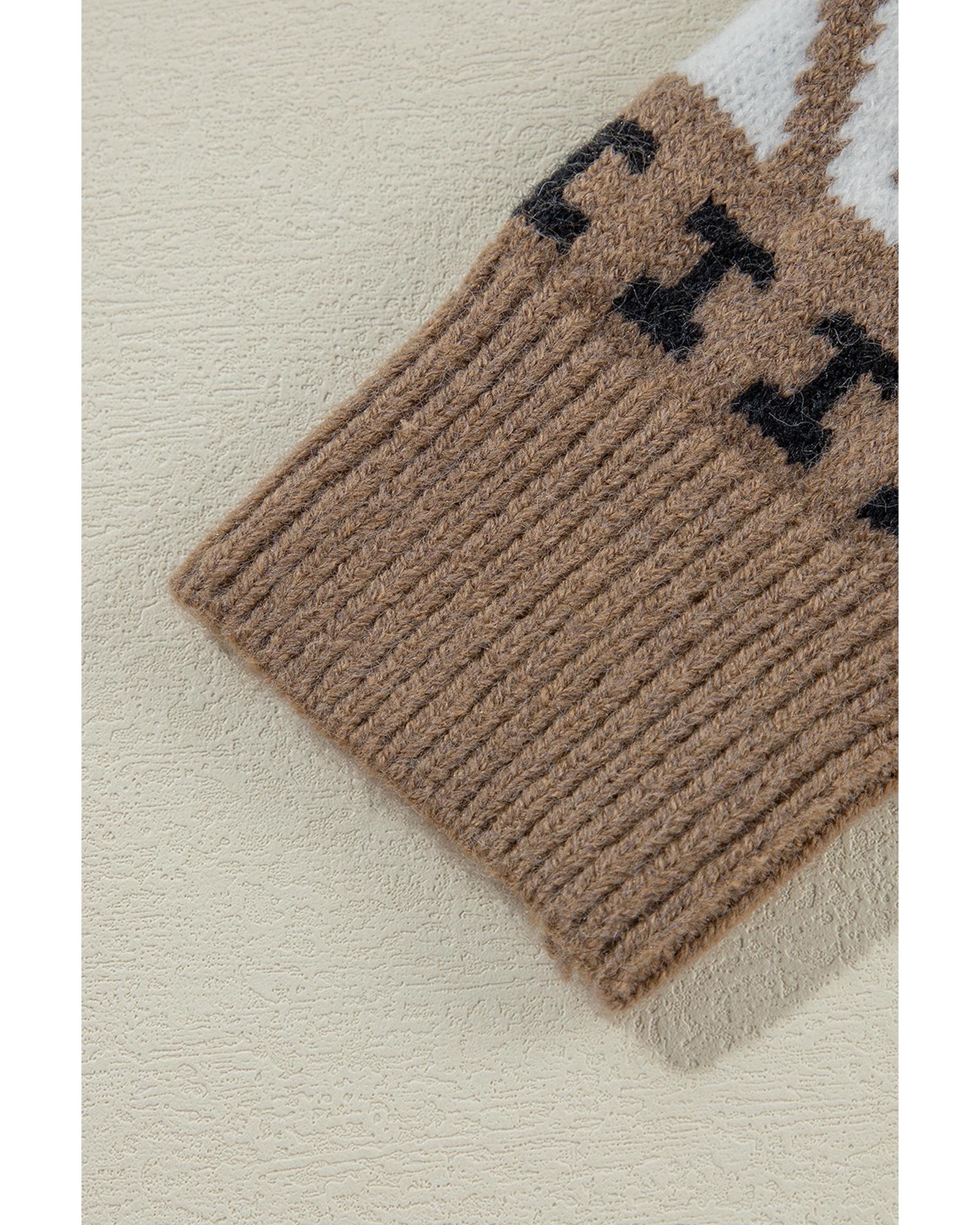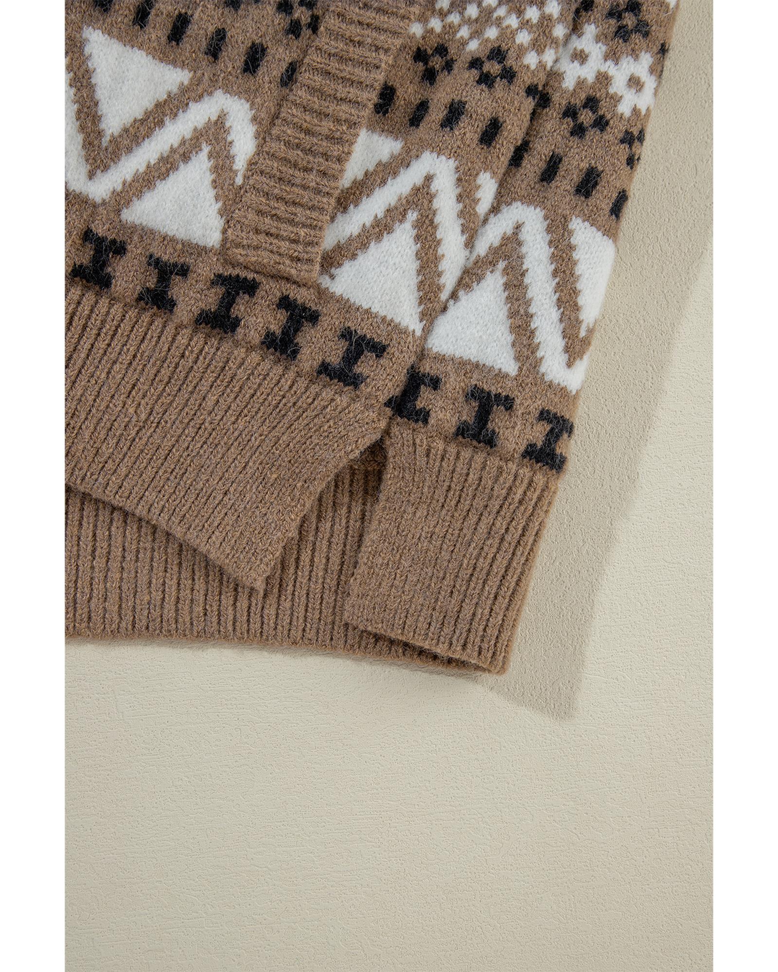 Brown Western Printed Ribbed Trim Collared Zip up Cardigan – L