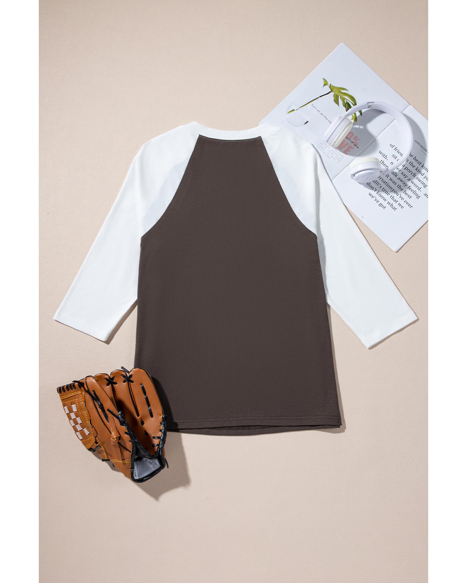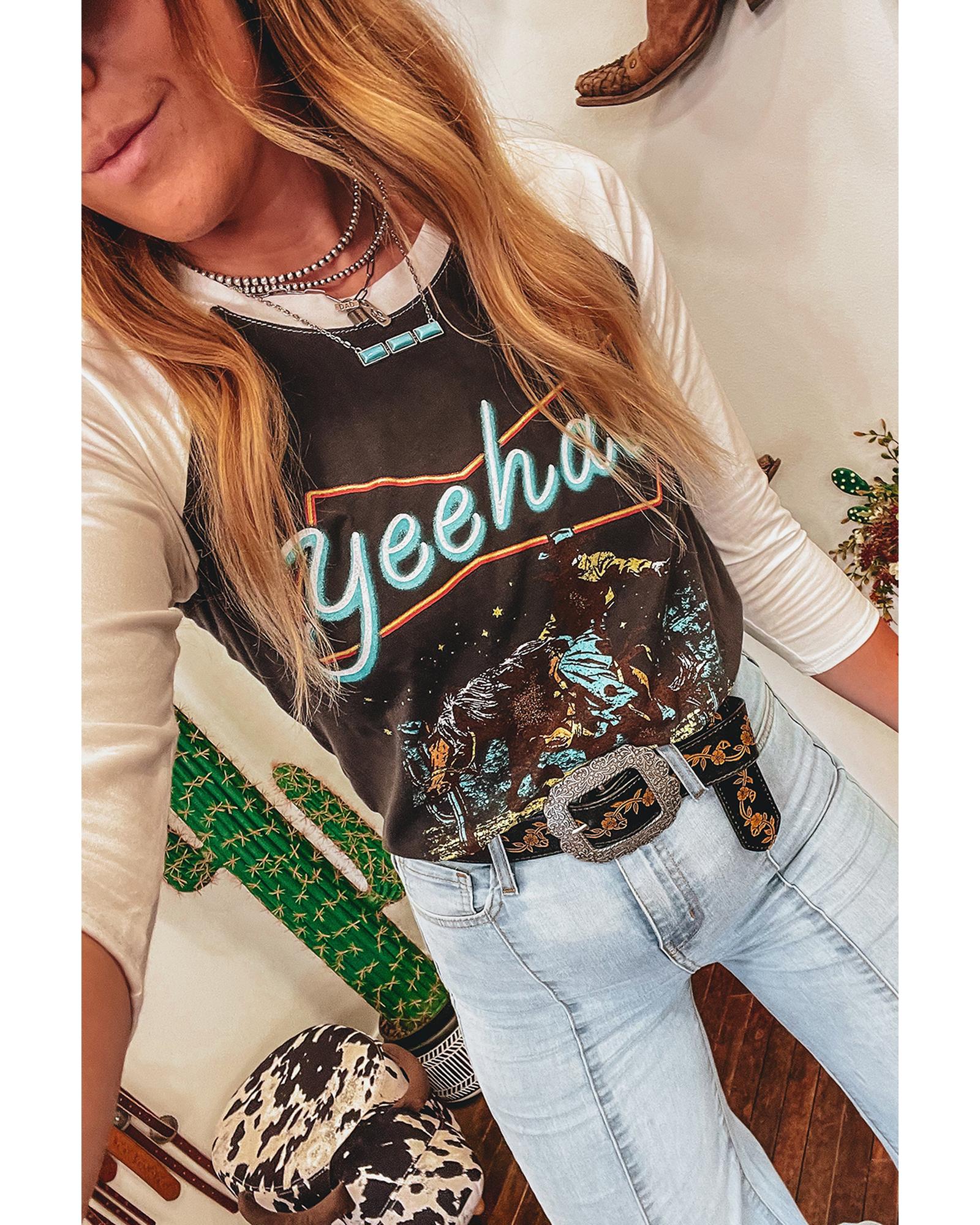 Brown Western Yeehaw Graphic Vintage Raglan Long Sleeve Top – M