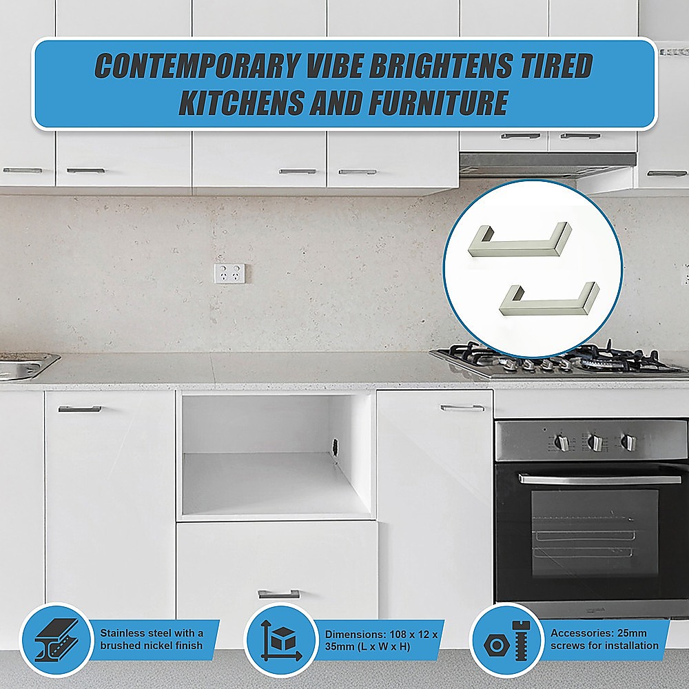 Brushed Nickel Stainless Steel Kitchen Cabinet Square Drawer Pull Door Handles 15-Pack