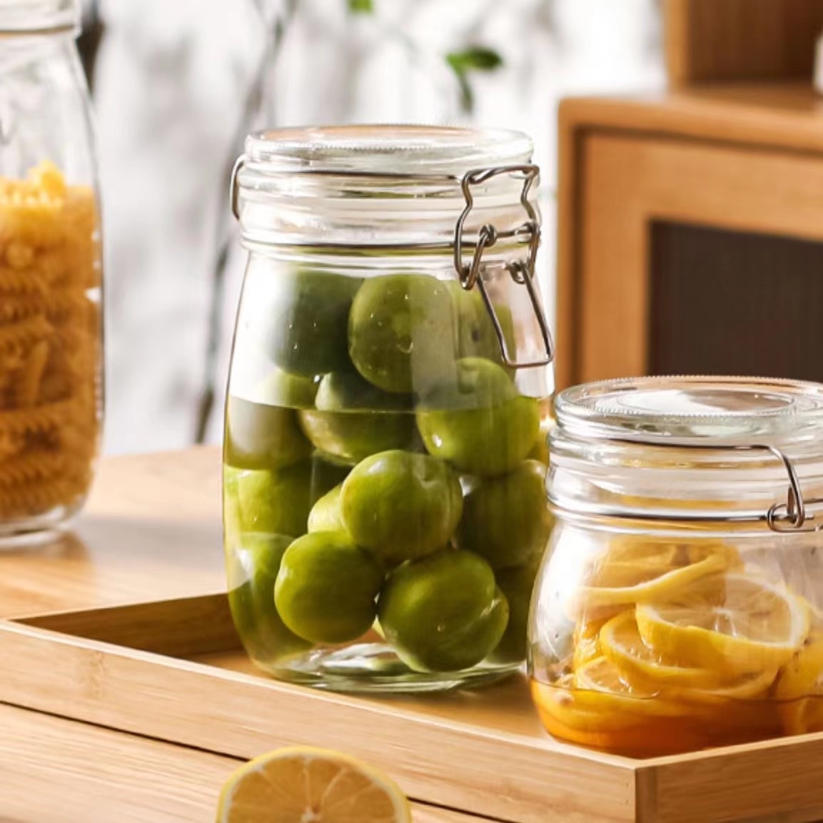 bulk 24 Glass Jar Metal Clip 1000ml Canister 16cm