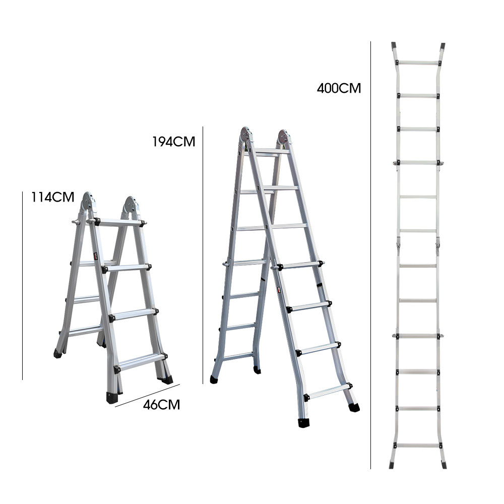 Navigate challenging terrains effortlessly; the ladder accommodates uneven surfaces, including stairs, enabling you to access hard-to-reach spots with ease. Crafted from anodized aluminium, it combines durability with a lightweight design of just 12kg, facilitating convenient transportation and setup. When your work is done, the ladder effortlessly folds away, taking up minimal space in your storage area.