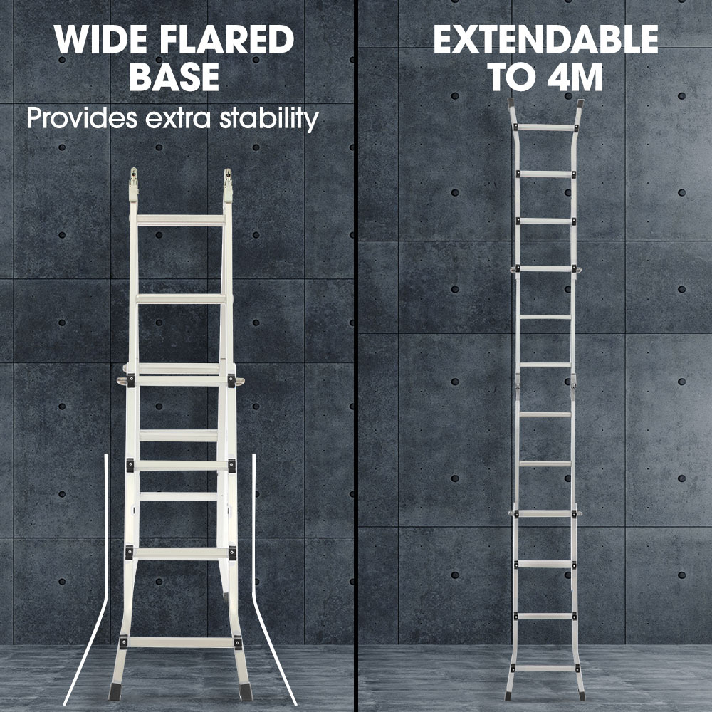 This Bullet Multipurpose Folding Ladder is the ultimate solution for all your elevated needs. With its extendable reach of up to 4 metres, this versatile ladder allows for a range of configurations. The included detachable workshelf platform enables you to keep your tools at your fingertips.