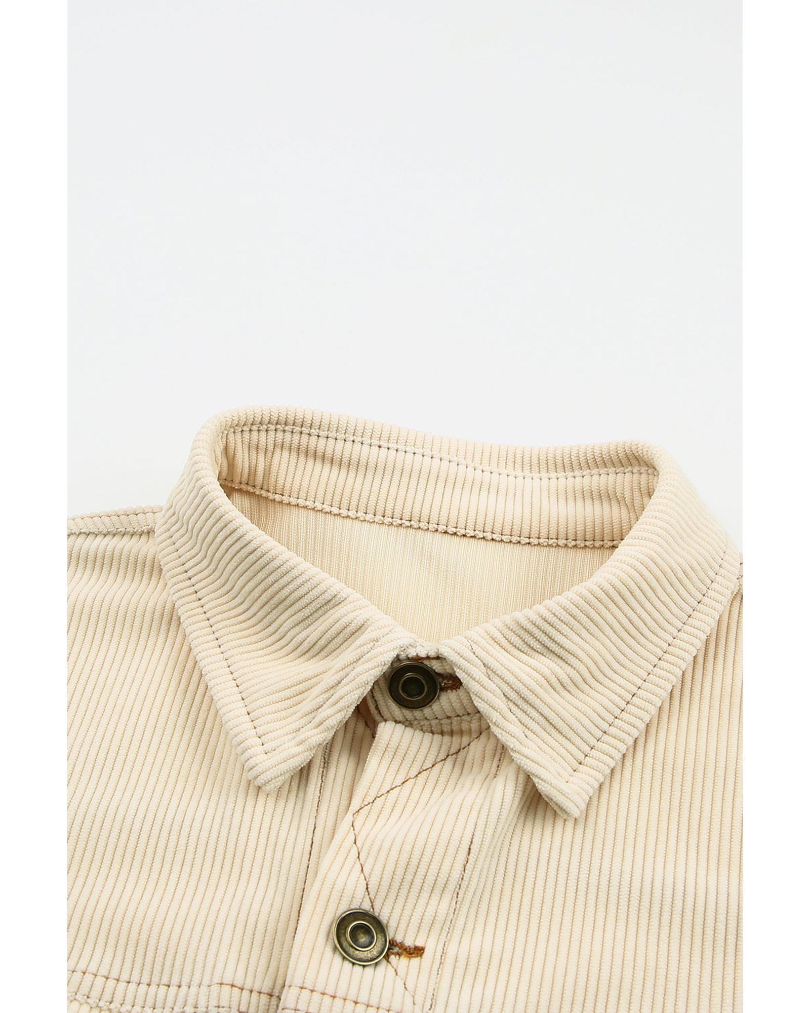 Button Up Pockets Striped Color Block Corduroy Jacket – M