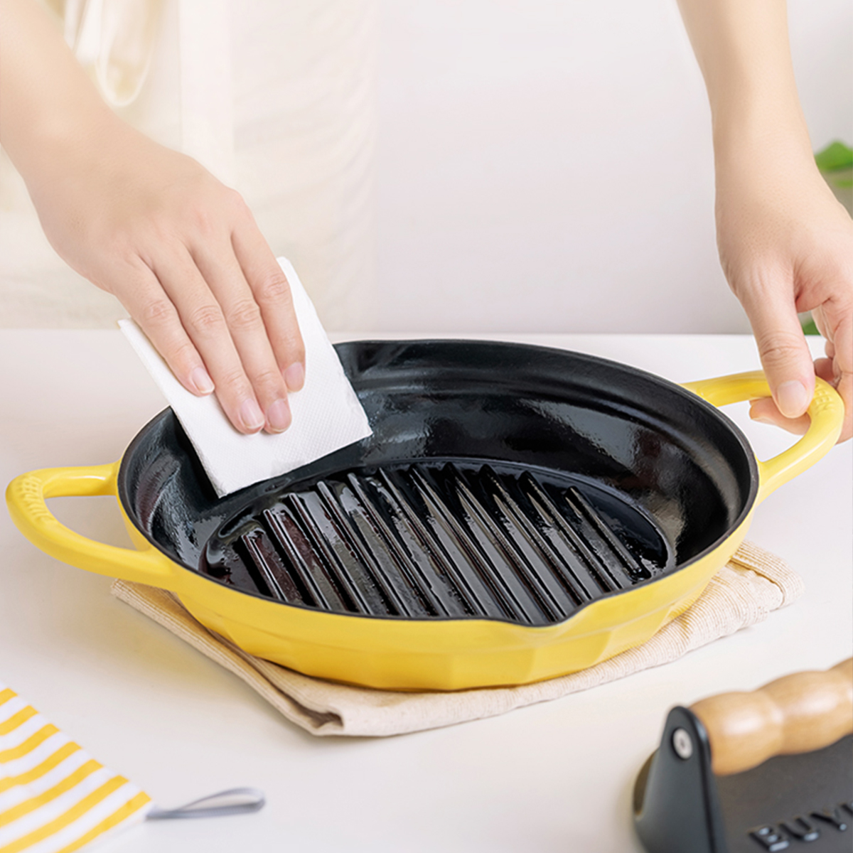 Start your cooking journey with the BUYDEEM Enameled Cast Iron Grill Pan CP553! Its superior heat distribution and retention ensure perfectly grilled meals every time.