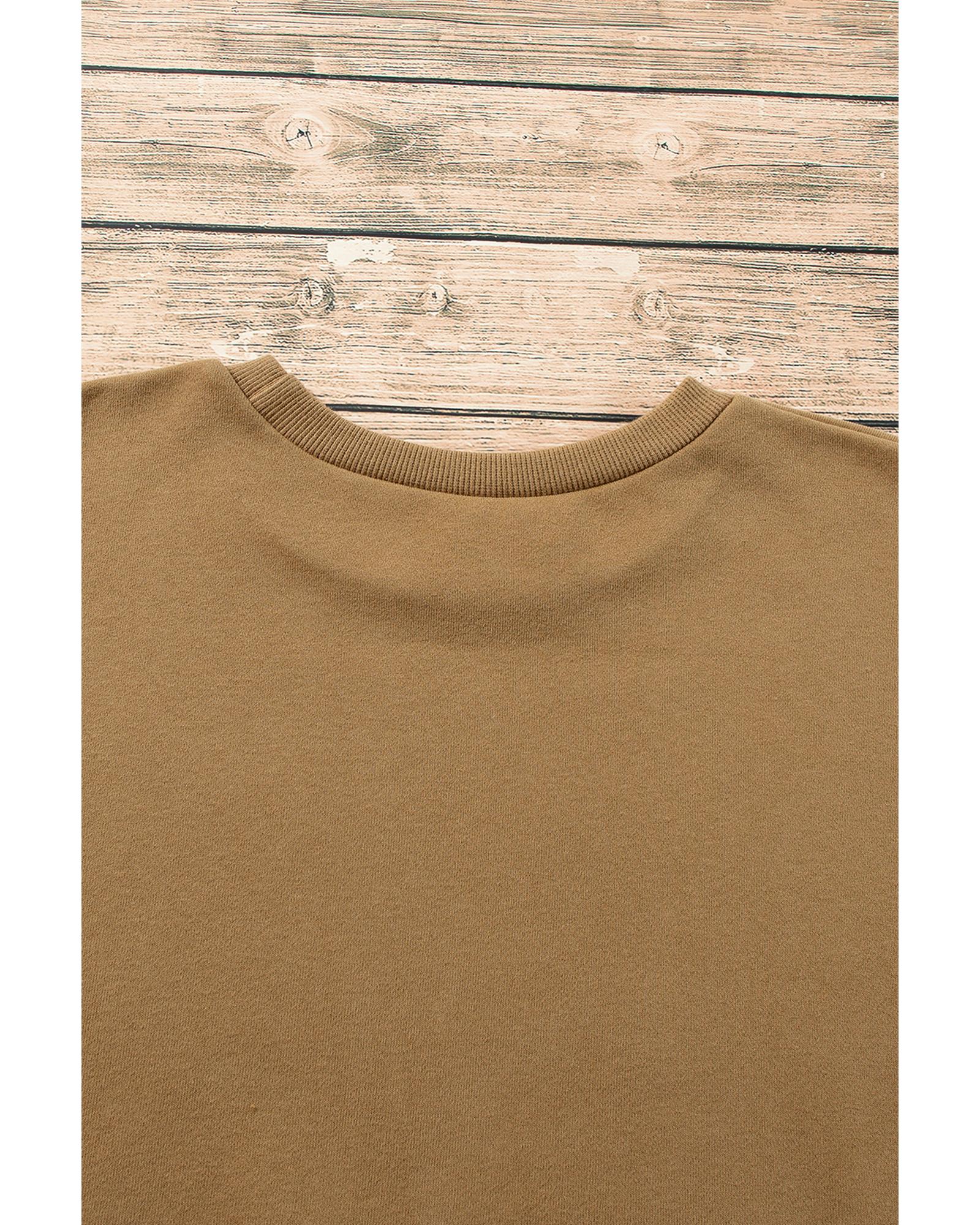 Camel Solid Fleece Lined Drop Shoulder High Low Sweatshirt – L