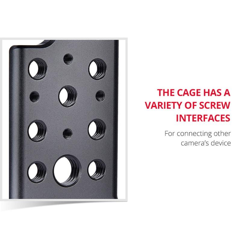 • Multiple screw interfaces on the cage for connecting camera peripherals
