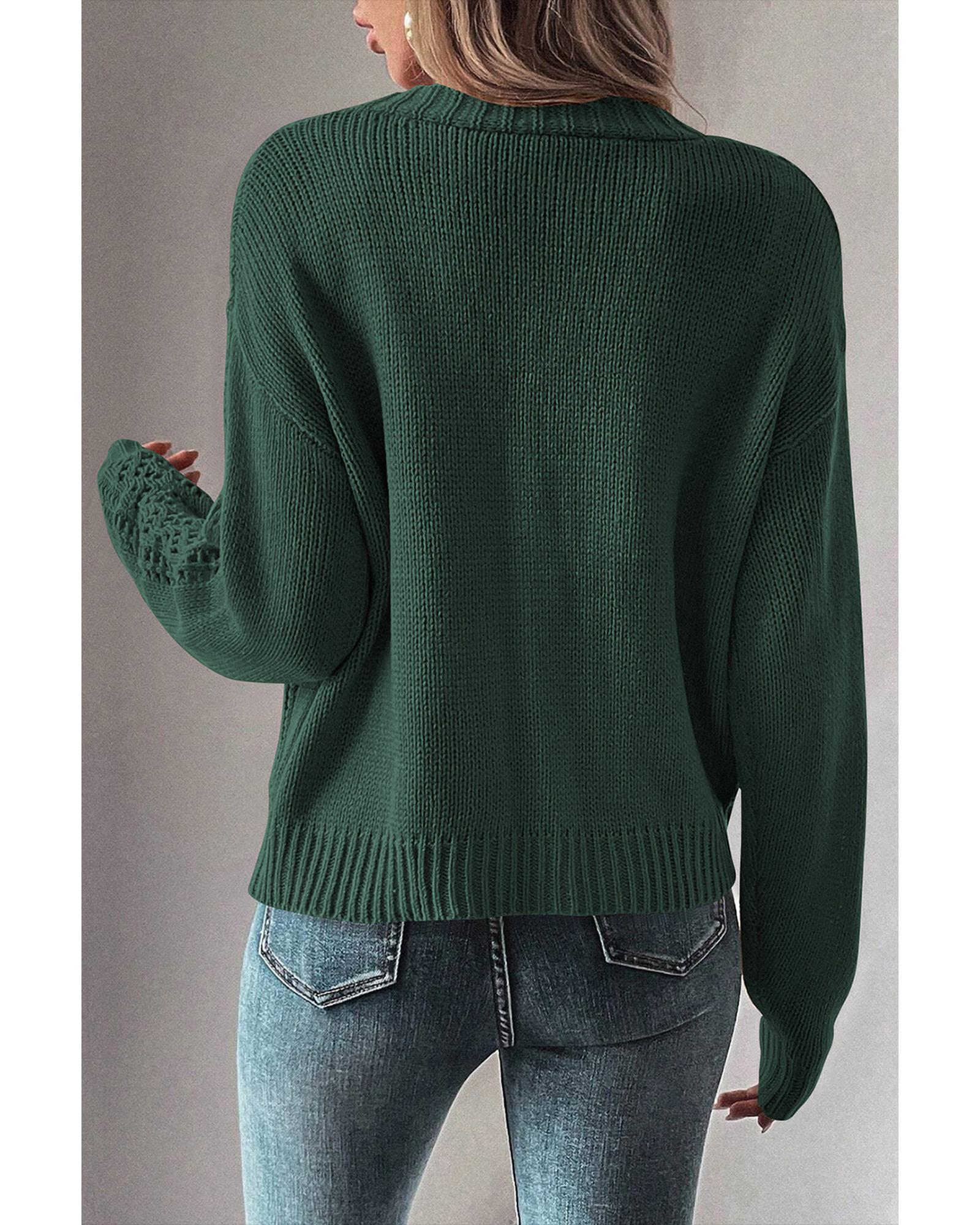 Sky Blue Eyelet Pattern Detail V Neck Drop Shoulder Sweater - L Original price was: $66.99.Current price is: $35.99.