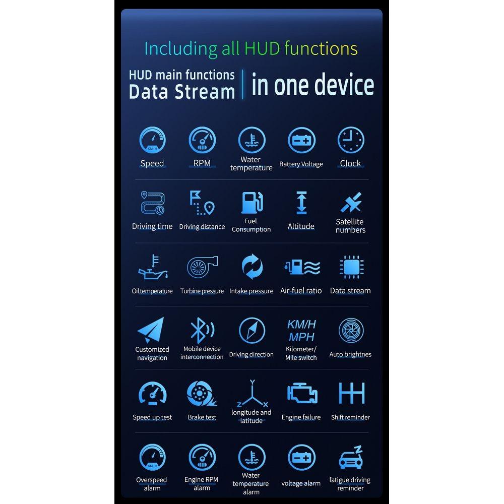 • 1 x Car Hud Display Overspeed Temp Engine Alarm P20 Obd2 + Gps