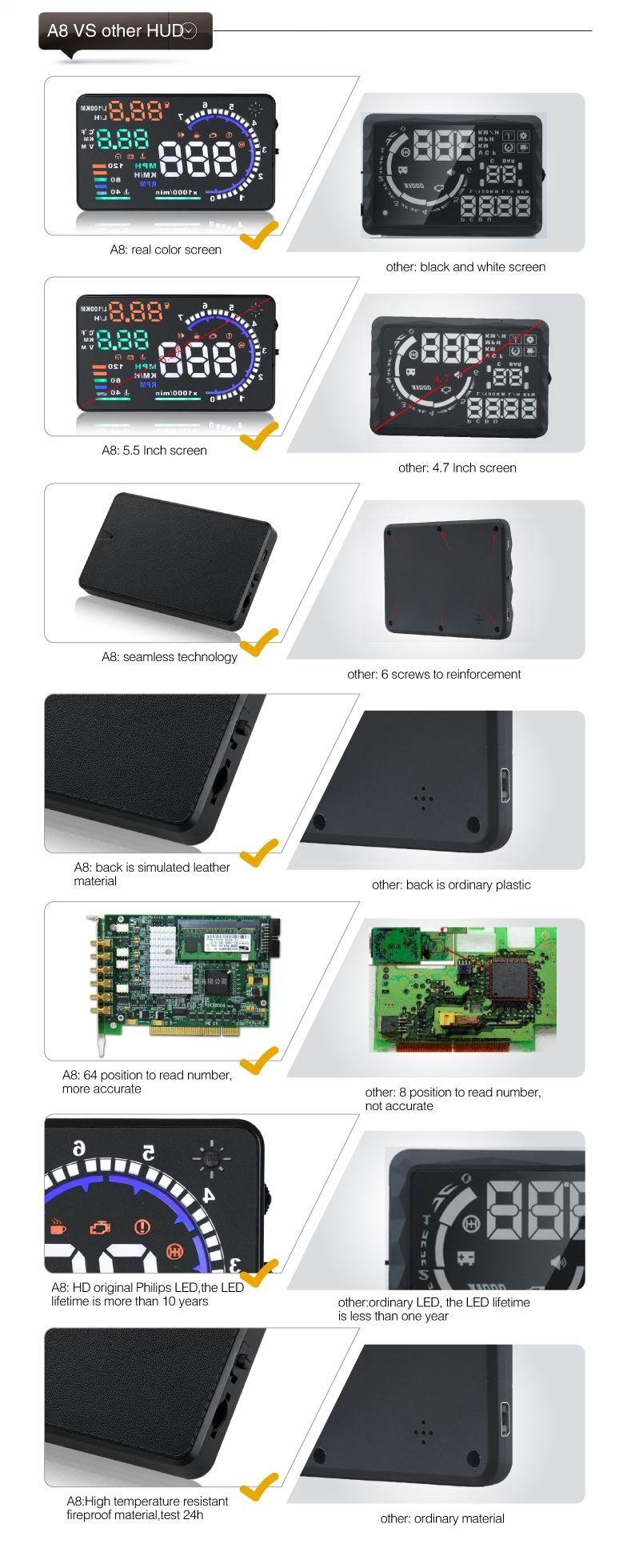 Car Obdii Hud Warning System 5.5 Inch Display Fuel Consumption Speed Alarm Water Temp Fault Diagnosis