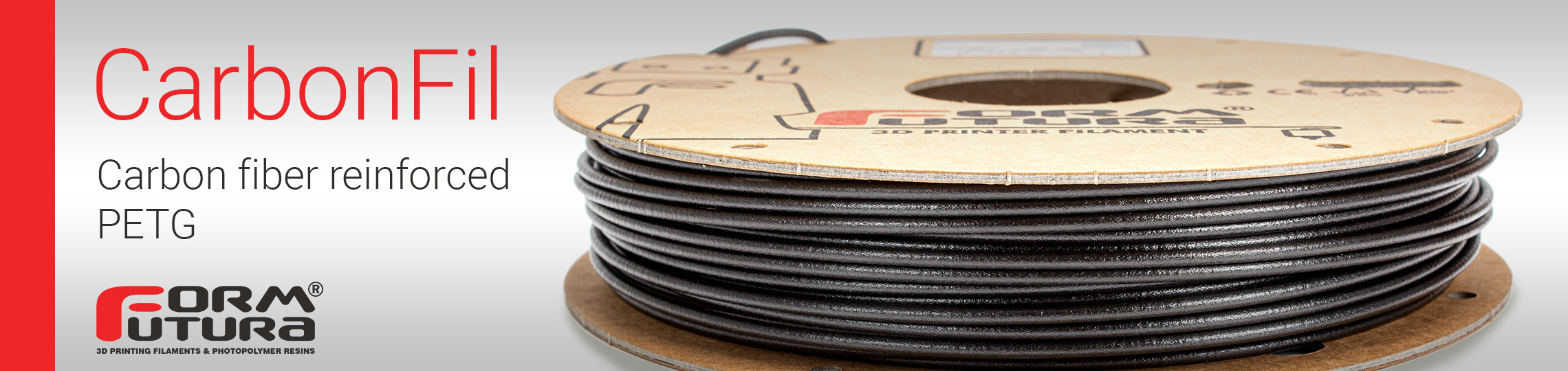 Our CarbonFil filament is based upon the unique PETG blend of our HDglass compound and is reinforced with 20% ultra-light and relatively long stringer carbon fibres, which has resulted in an exceptionally stiff carbon-fibre reinforced 3D printer filament. CarbonFil is twice as stiff as HDglass and yet it is even 10% more impact resistant, which is a remarkable feature for carbon-fibre reinforced filament.
