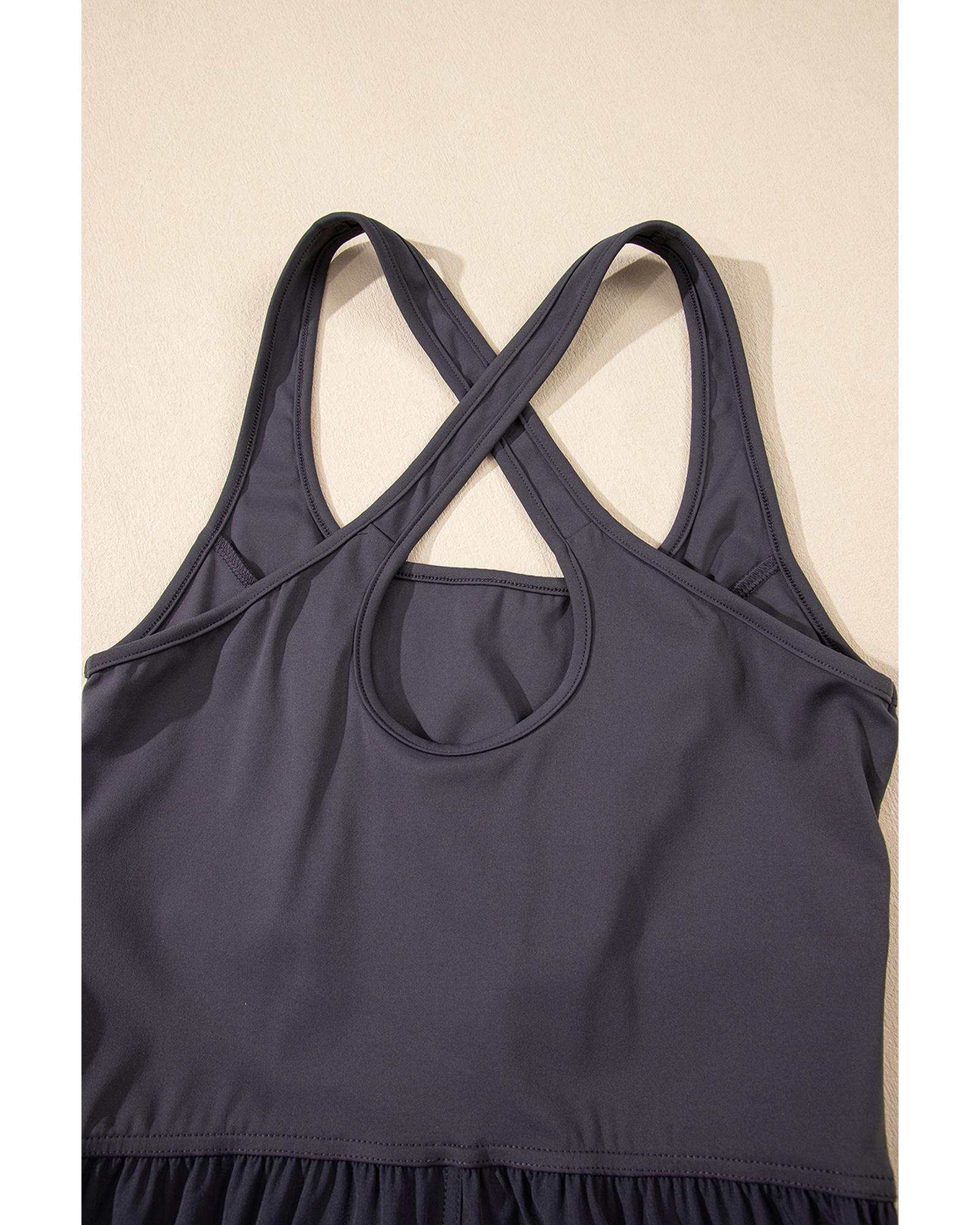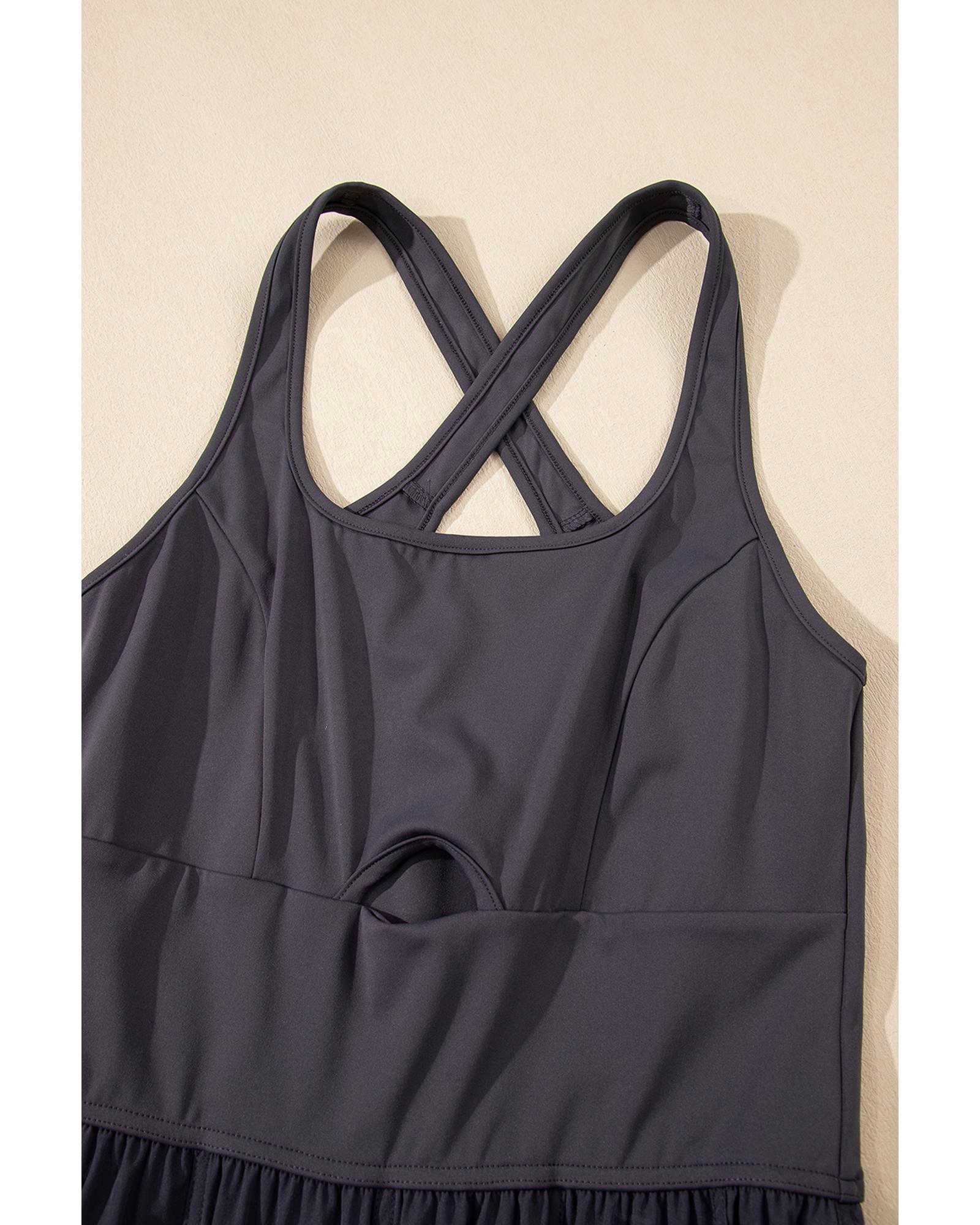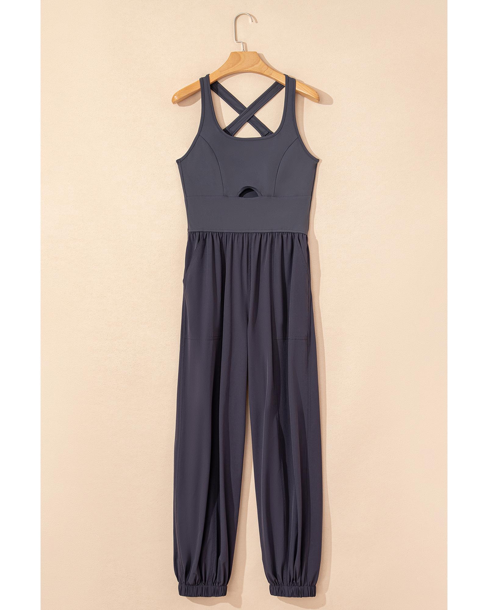 Carbon Grey Back Crossed Straps Hollow Out Jogger Jumpsuit – L