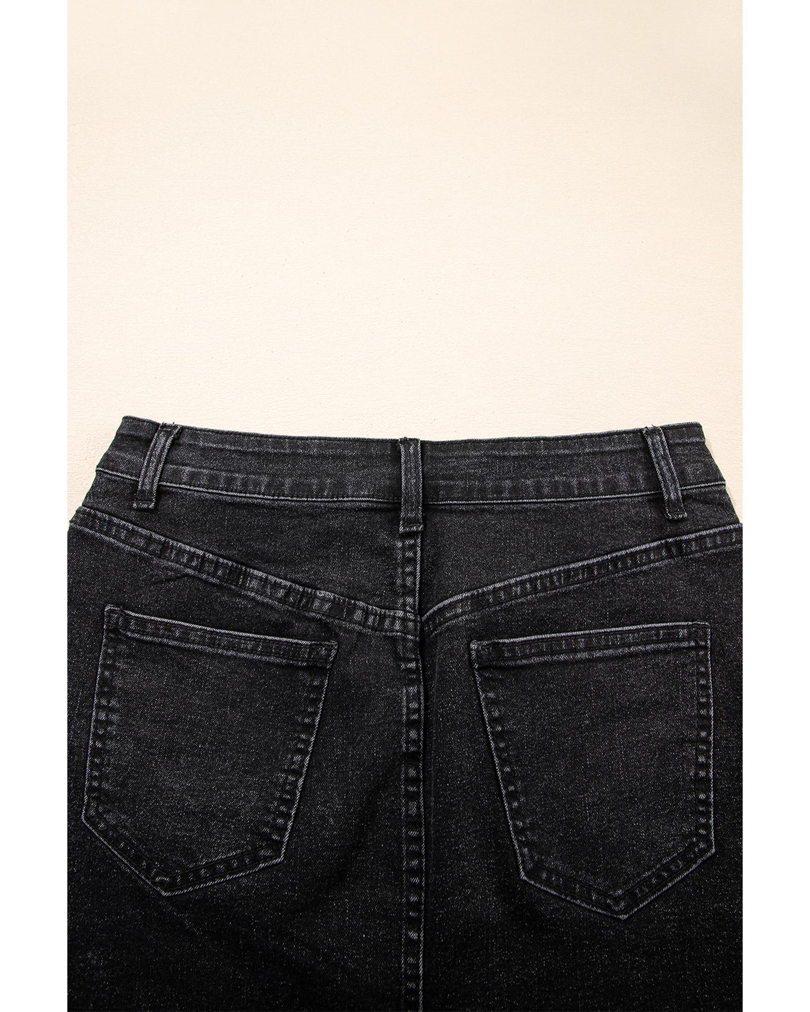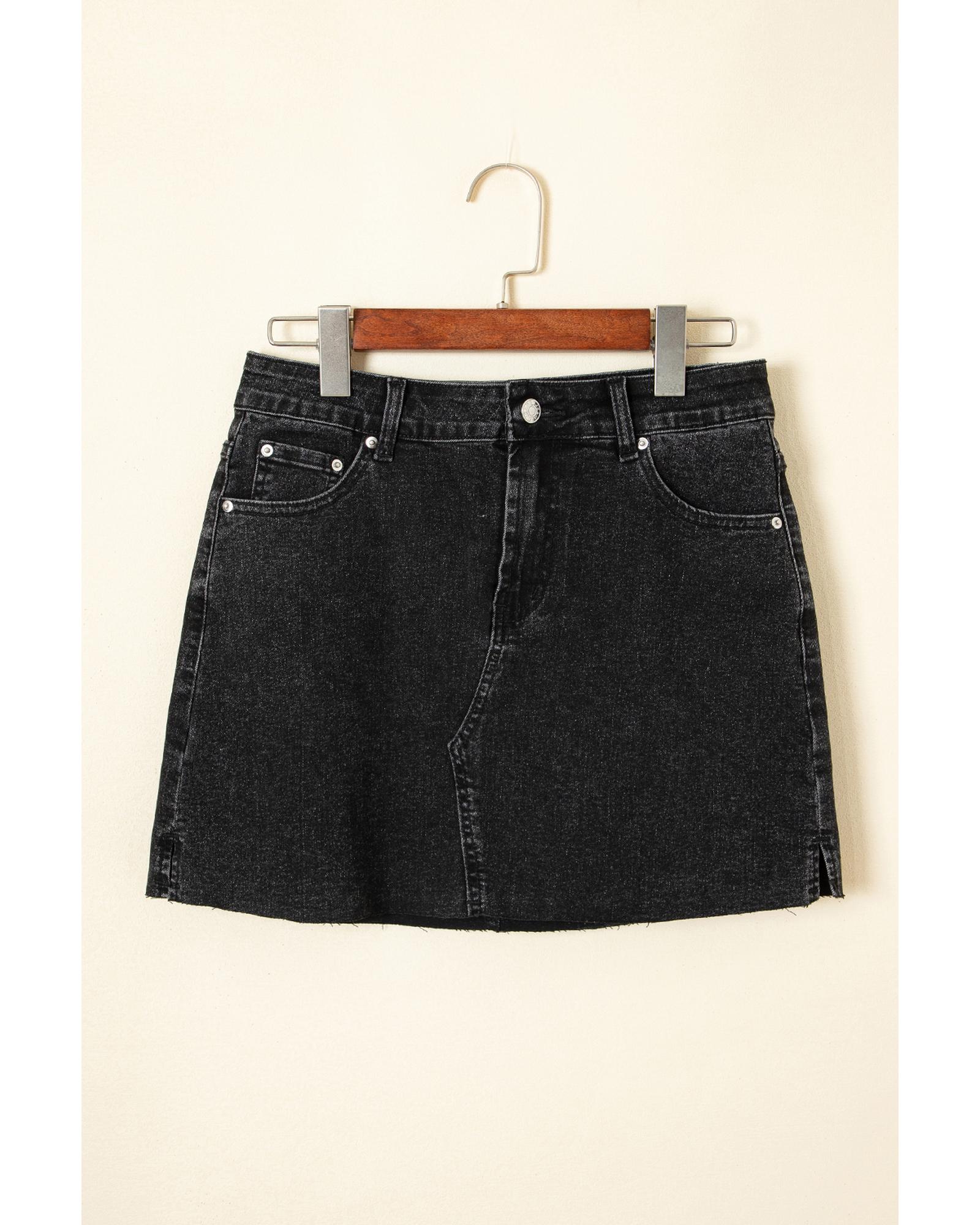 Carbon Grey Mineral Wash Ripped Raw Hem Denim Mini Skirt – 12 US