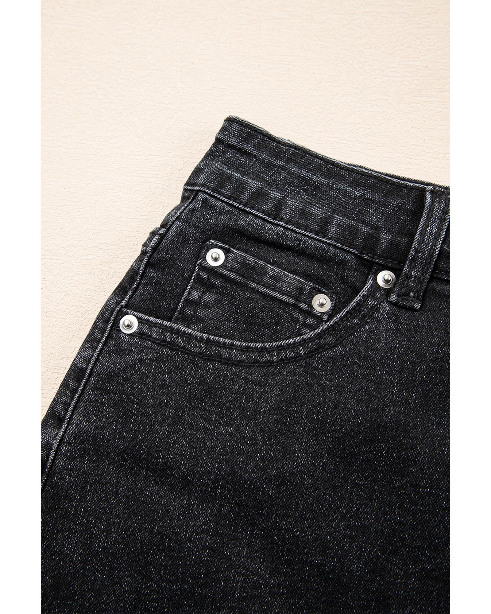 Black Side Pockets Frilled Smocked High Waist Wide Leg Jeans - S