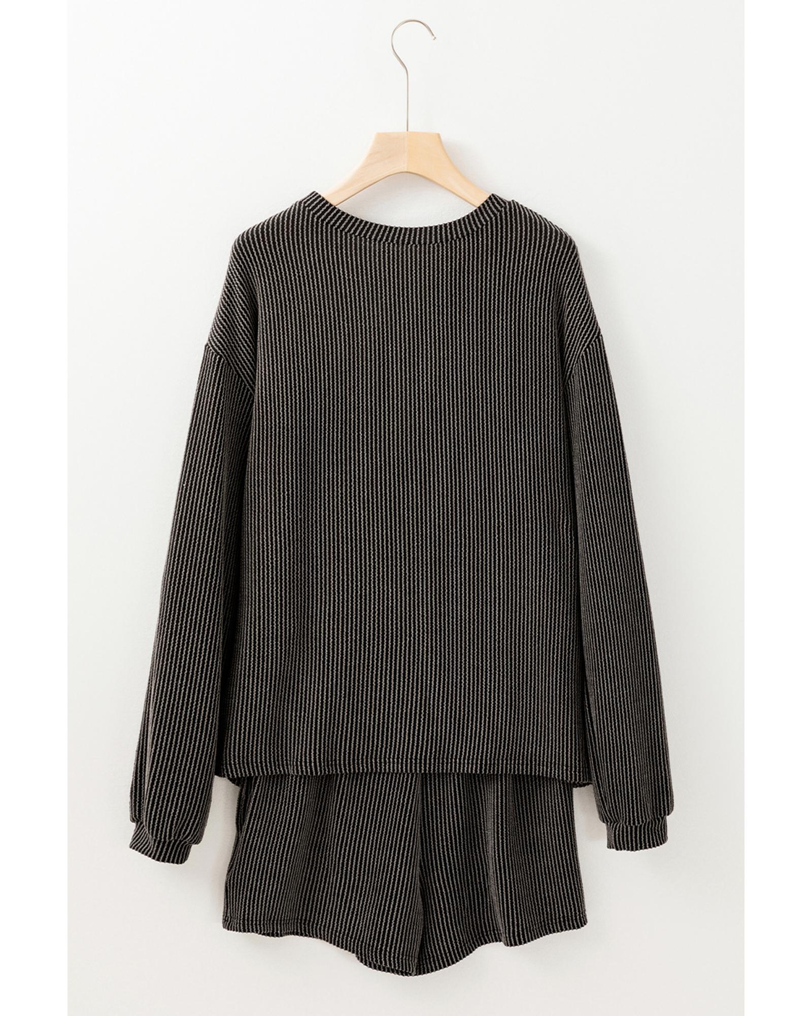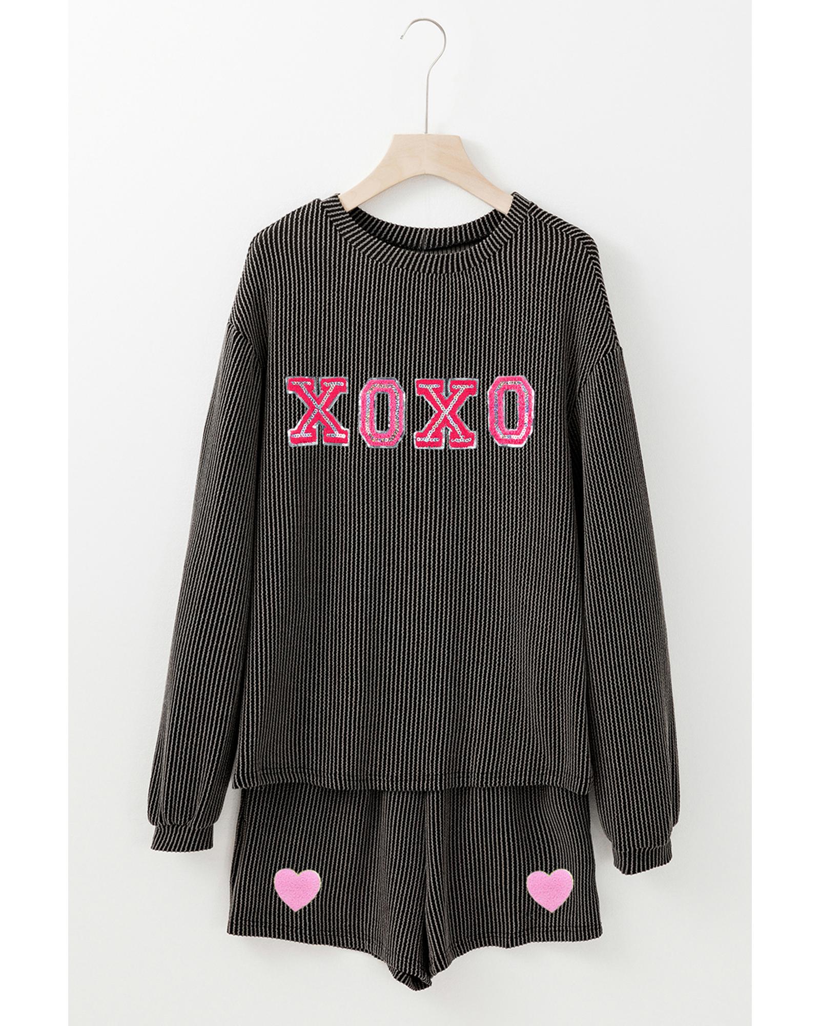 Carbon Grey XOXO Heart Patched Pattern Long Sleeve Corded Shorts Set – M