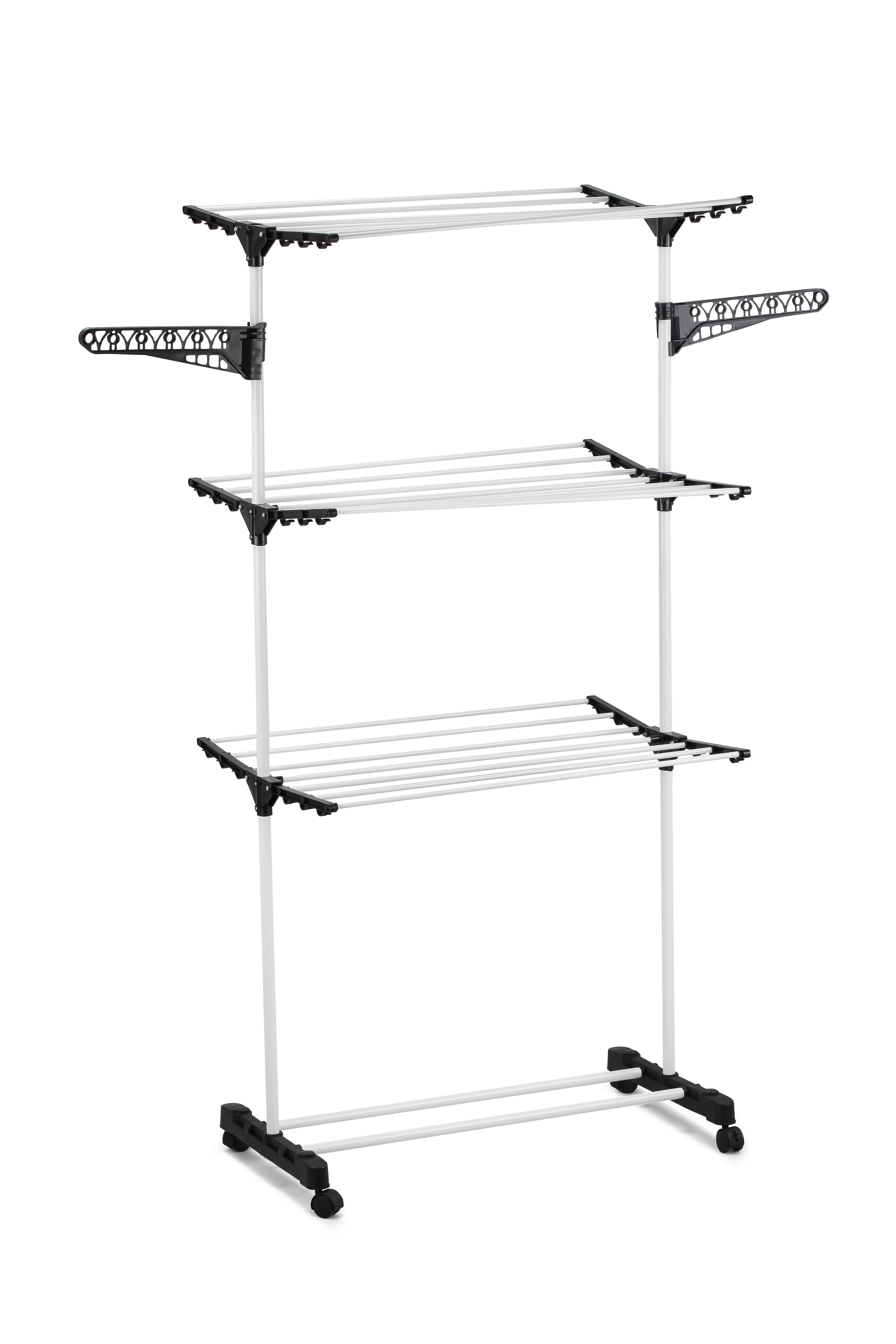 - LARGE CAPACITY: This 3-Tier Folding Clothes Drying Rack features an overall dimension of 165 x 140 x 57 cm and a 3-tier construction with 6 foldable shelves, 2 side wings with 7 holes for hanging and drying different clothes easily and conveniently.