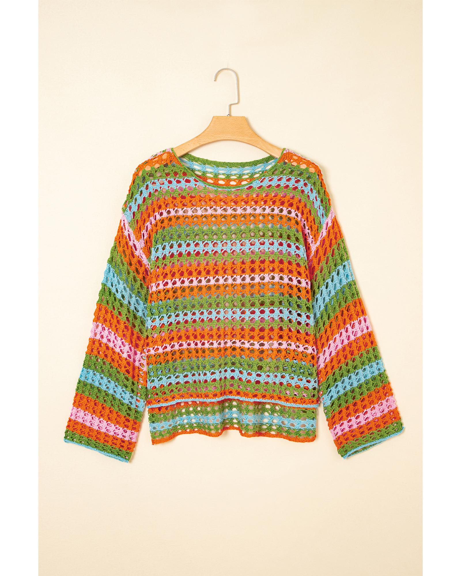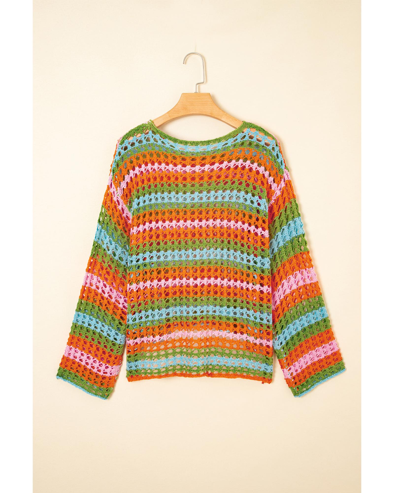 Carrot Multi Stripe Open Knit Sweater Beach Cover Up – S