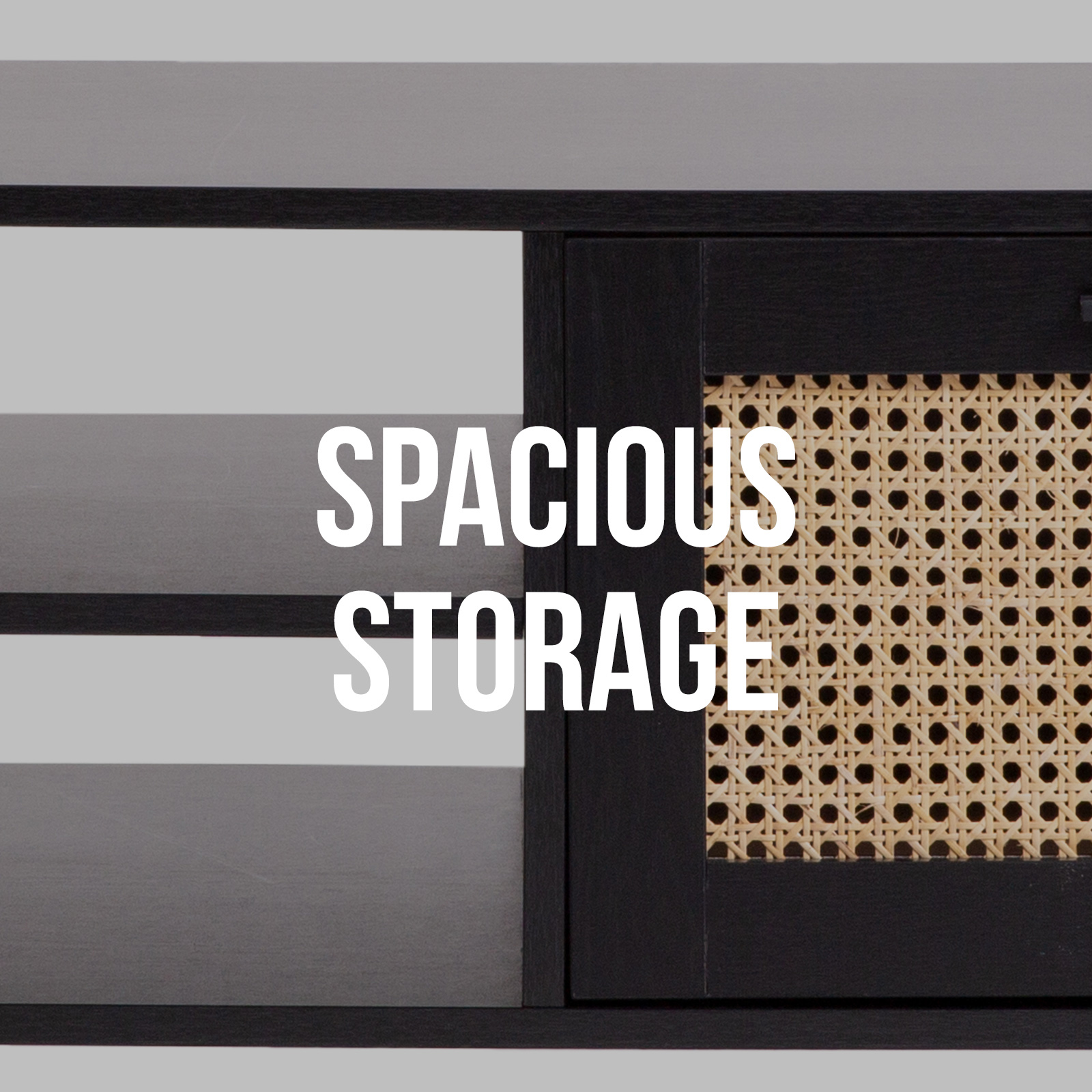 The two open shelves are perfect for storage of coffee table books, personal decor items and the remote control, while the large drawer with rattan feature panel gives you plenty of space to keep your living room organized.