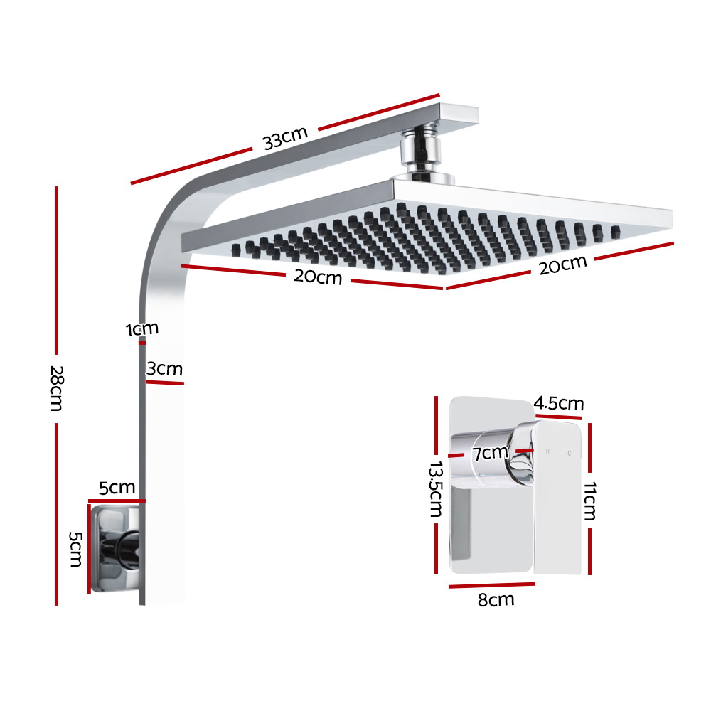 Cefito 8” Rain Shower Head Wall Arm Square High Pressure Mixer Tap Chrome