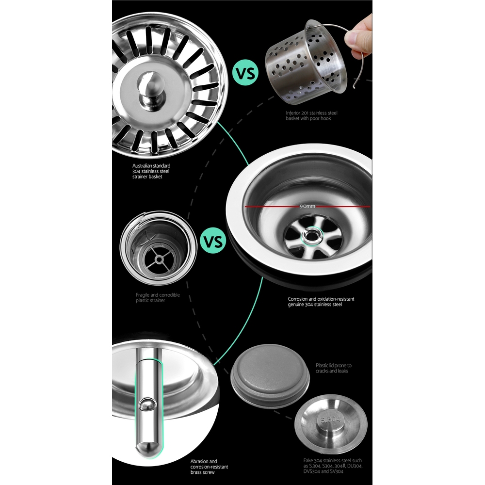 The Cefito Handmade Stainless Steel Sink is built to exacting standards so that you get the very best of quality materials and craftsmanship. It is crafted from heavy-duty food grade 304 stainless steel, unlike others that are made from inferior 201 grade or 304 imitations. Built to be scratch-proof, oil-proof and more importantly, bacteria-free, the silky-smooth satin-coated stainless-steel sink also features an X-flume design for easy drainage, deep and wide bowl for practicality, R10 rounded corners for safety and easy cleaning, eco-friendly anti-condensation paint, and five sound-deadening pads. Suitable for drop-in, flush-mount or under-mount installation, our stainless steel sink should have a definitive place in your uncompromising kitchen.