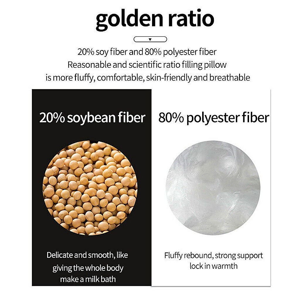 Crafted from breathable, hypoallergenic materials that facilitate airflow and regulate temperature, it creates a cozy sleep environment. With the convenience of being machine washable, the pillow is easily maintained for a consistently fresh feel. Its versatile design is suitable for various sleeping positions, accommodating diverse sleep preferences. The removable and washable cover streamlines cleaning, ensuring hygiene. Filled with a scientifically balanced combination of 20% soybean fiber and 80% polyester fiber, the pillow guarantees durability and comfort. Crafted without the use of chemicals, it provides a safe and healthy sleeping experience.