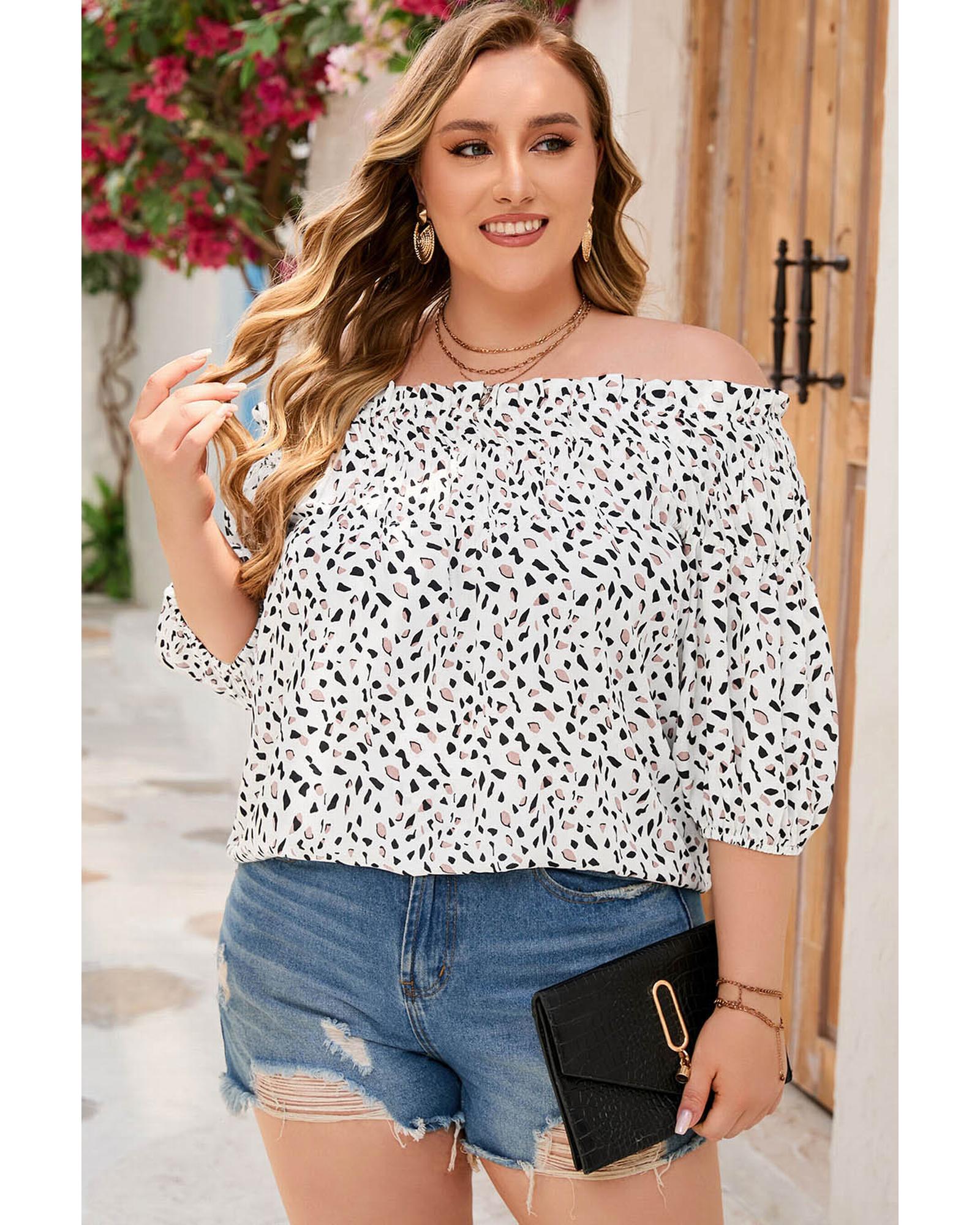 Cheetah Spotted Plus Size Off Shoulder Blouse – 3X