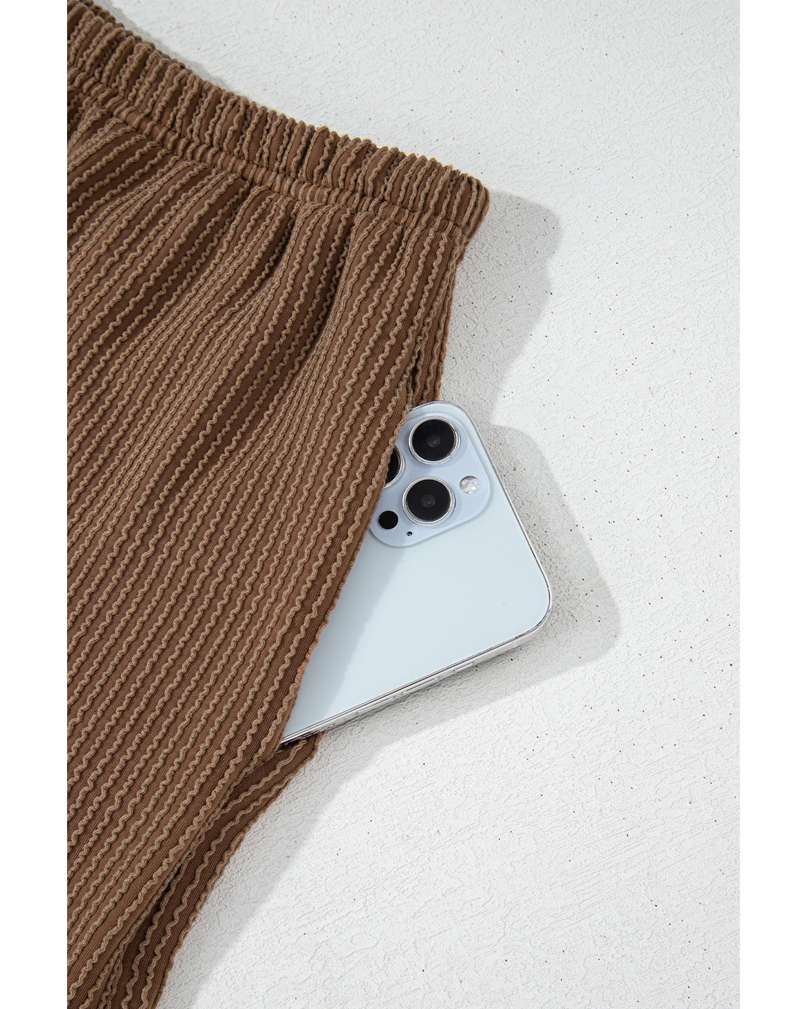 - Chestnut Corded Knit Long Sleeve Top and High Waist Shorts Set