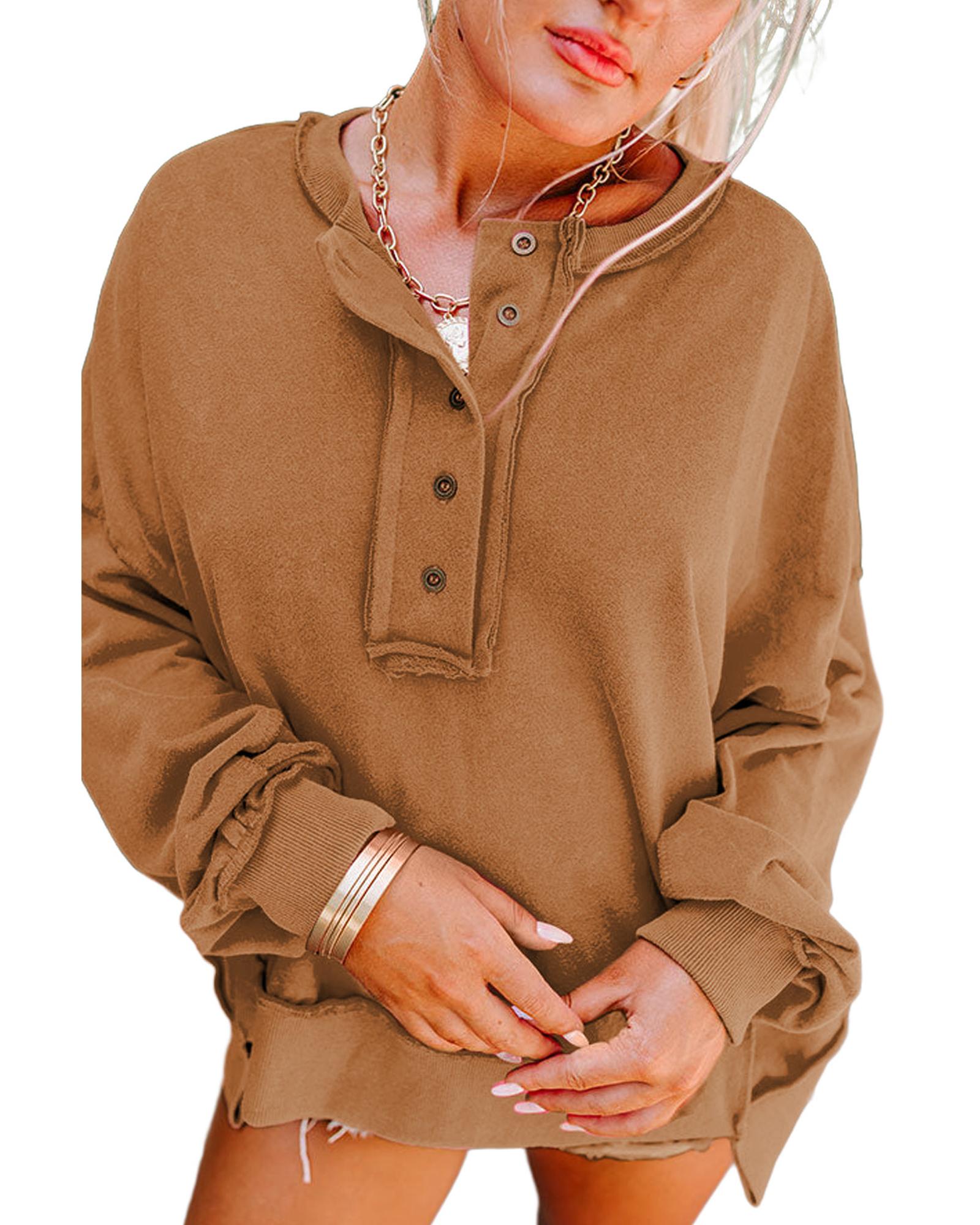 Chestnut Drop Shoulder Henley Buttons Sweatshirt – M