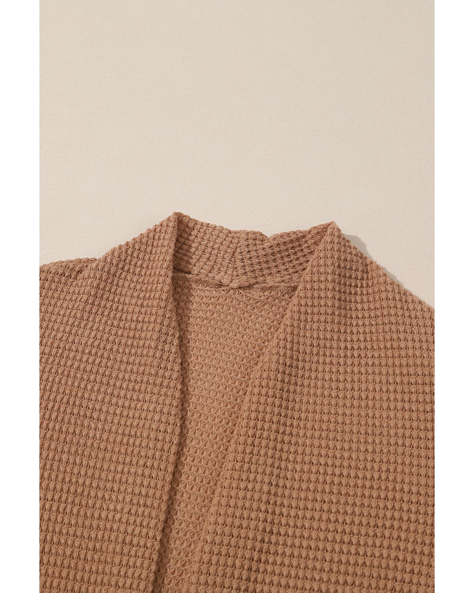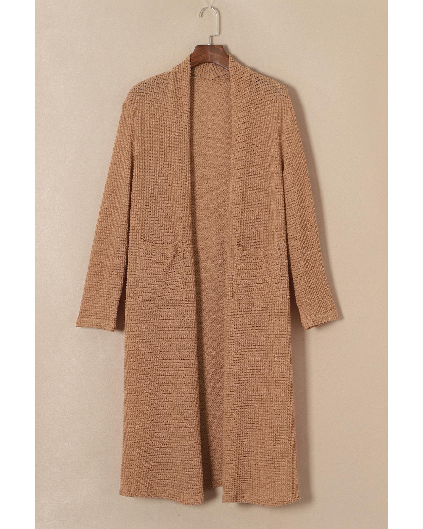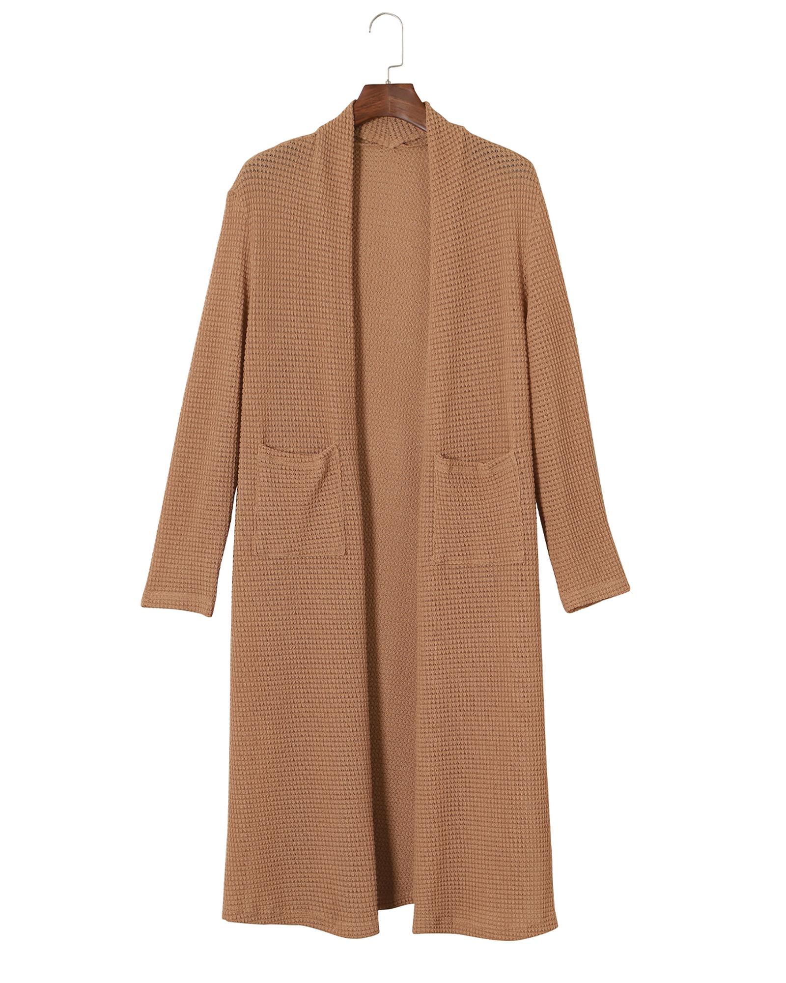 Chestnut Long Waffle Knit Cardigan with Pockets – M