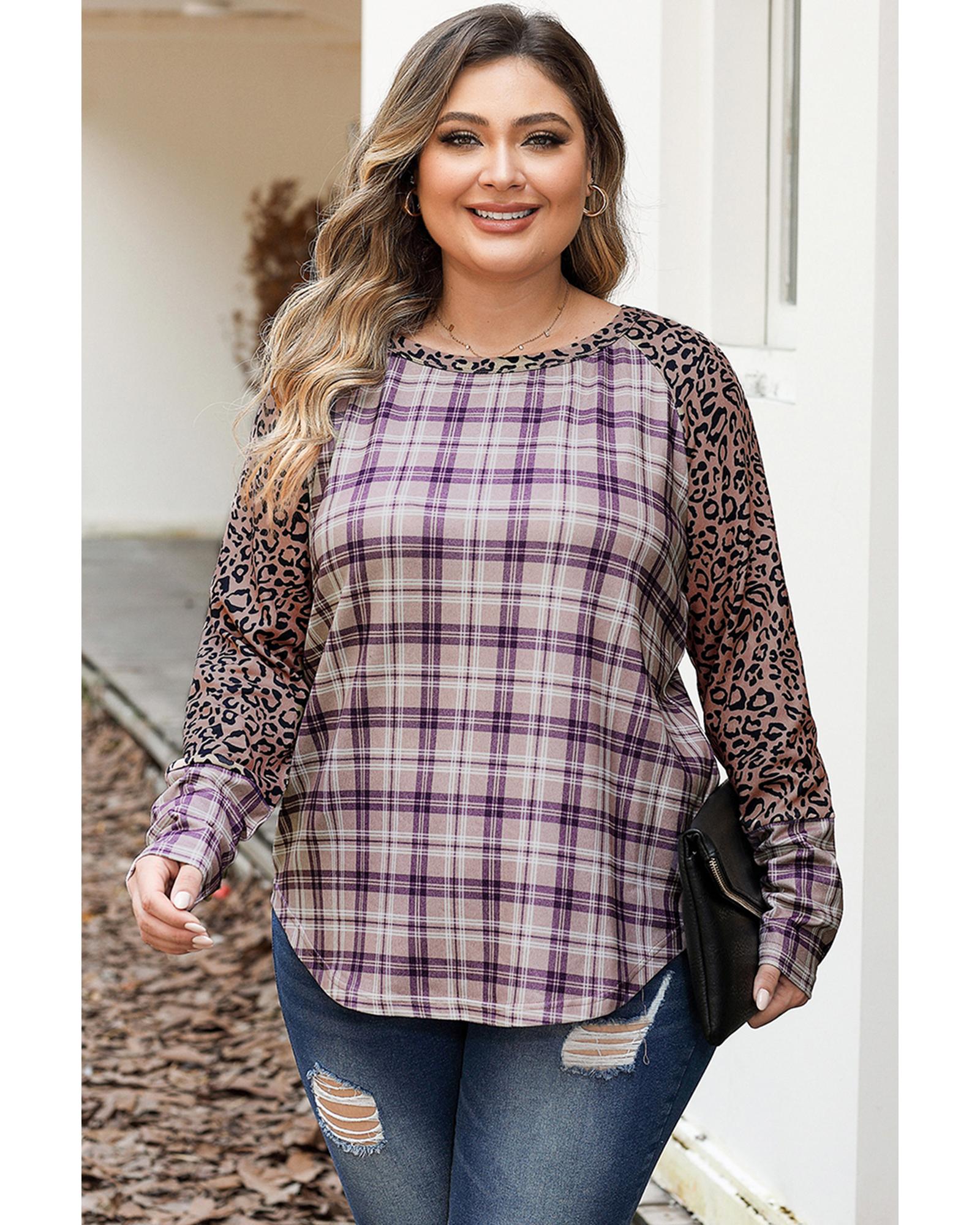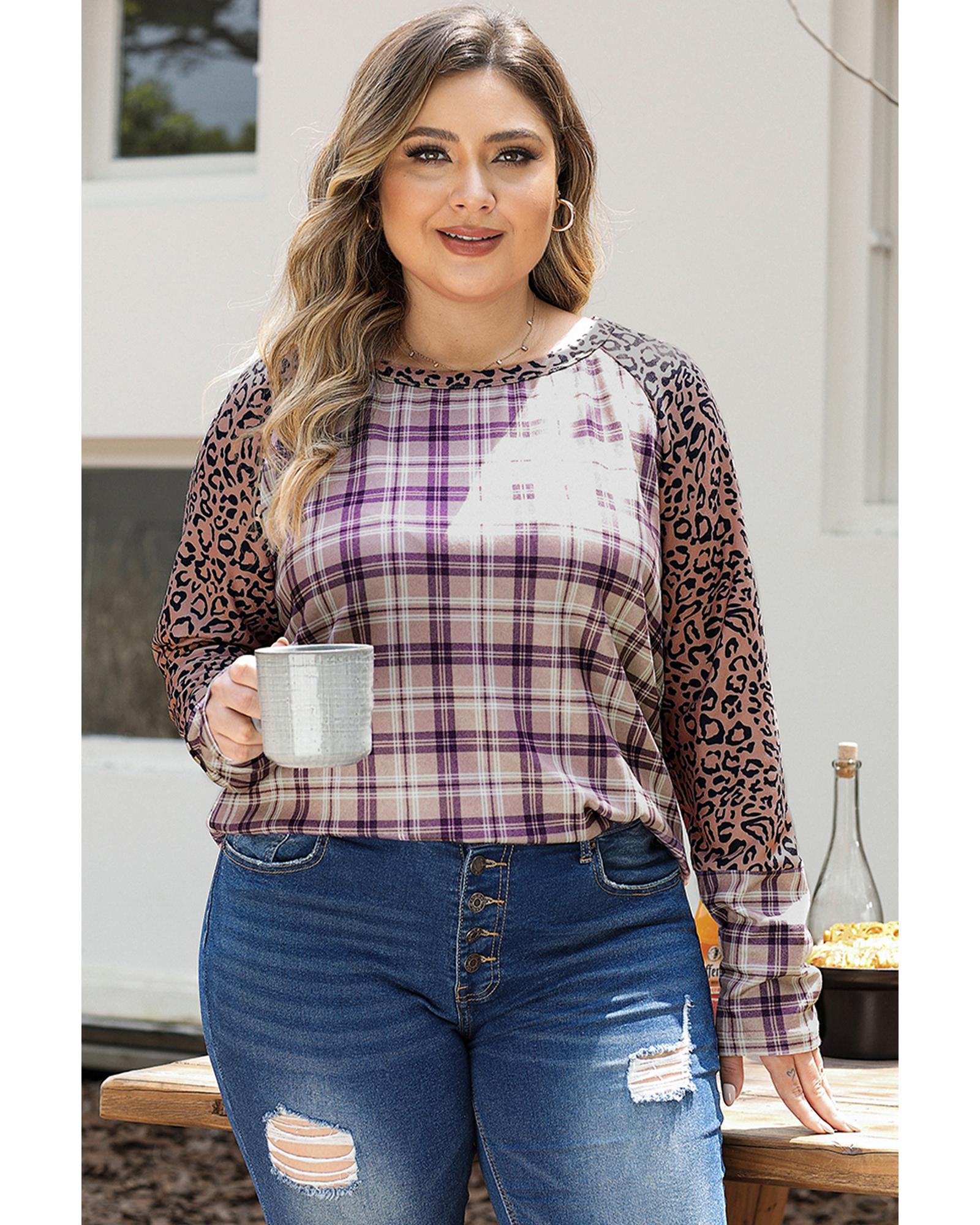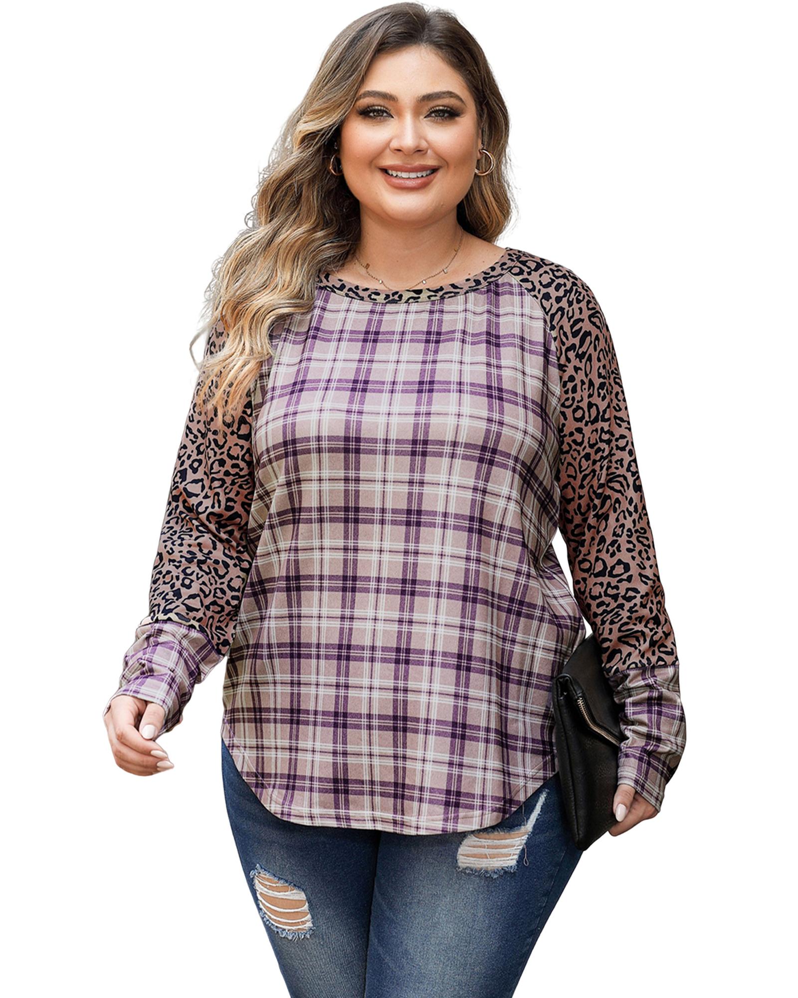 - Stay ahead of the fashion game with our Chestnut Plus Size Leopard Raglan Sleeve Plaid Topn