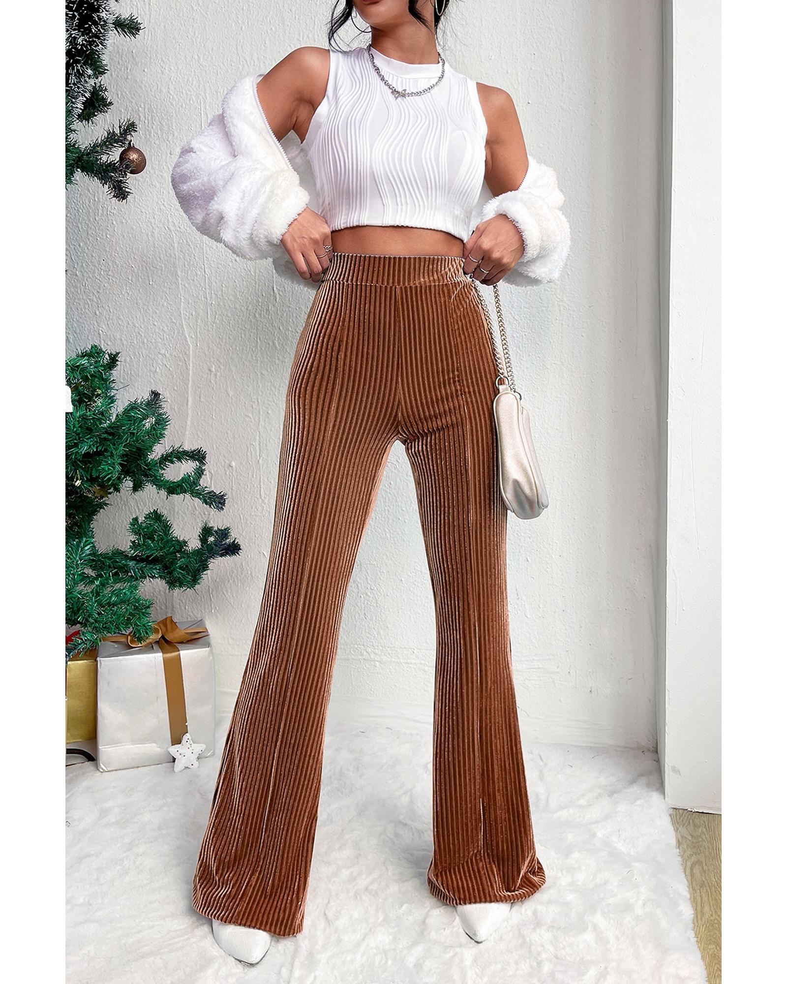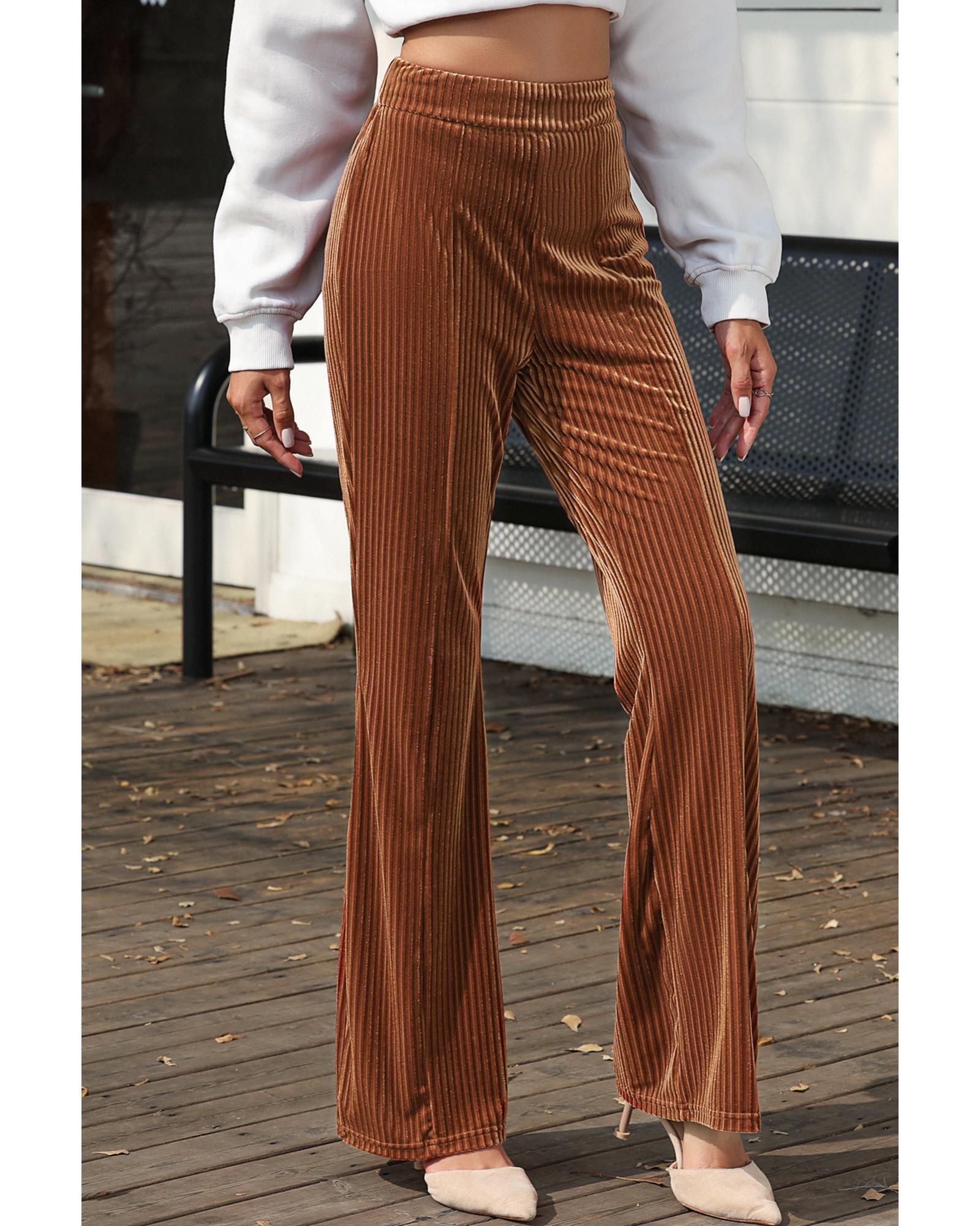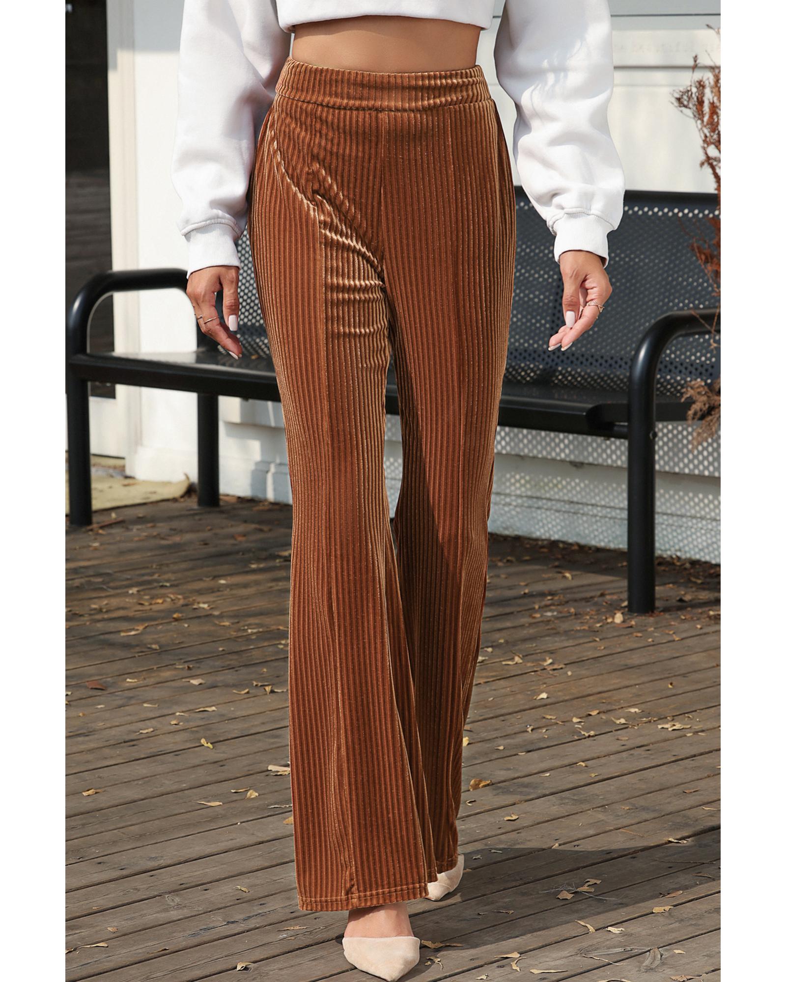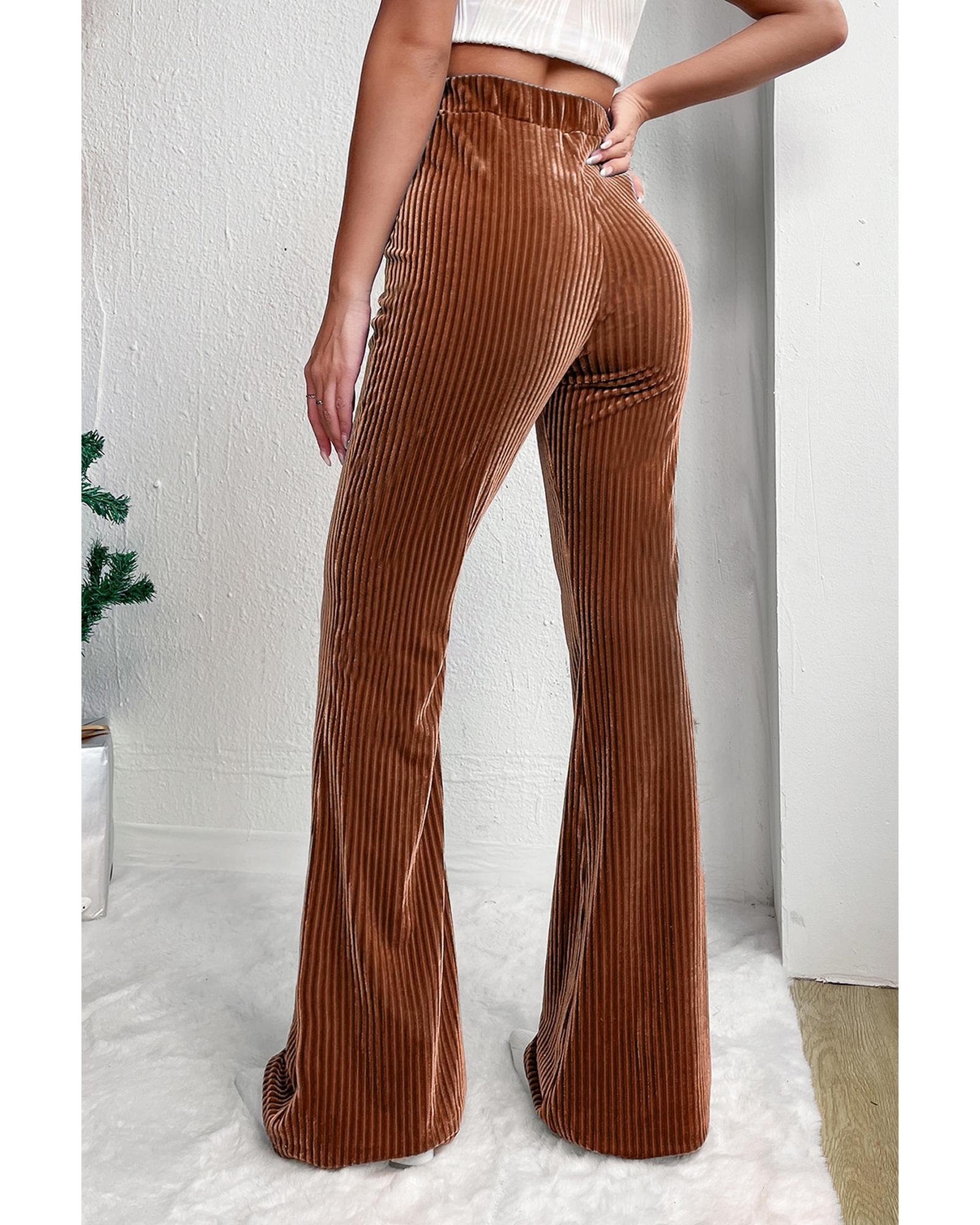 Chestnut Solid Color High Waist Flare Corduroy Pants – S
