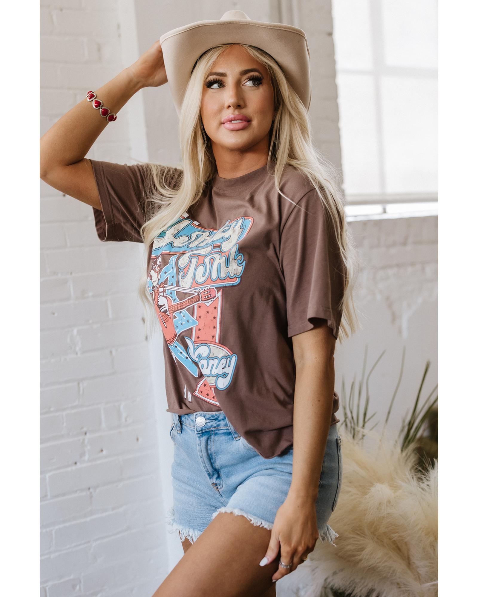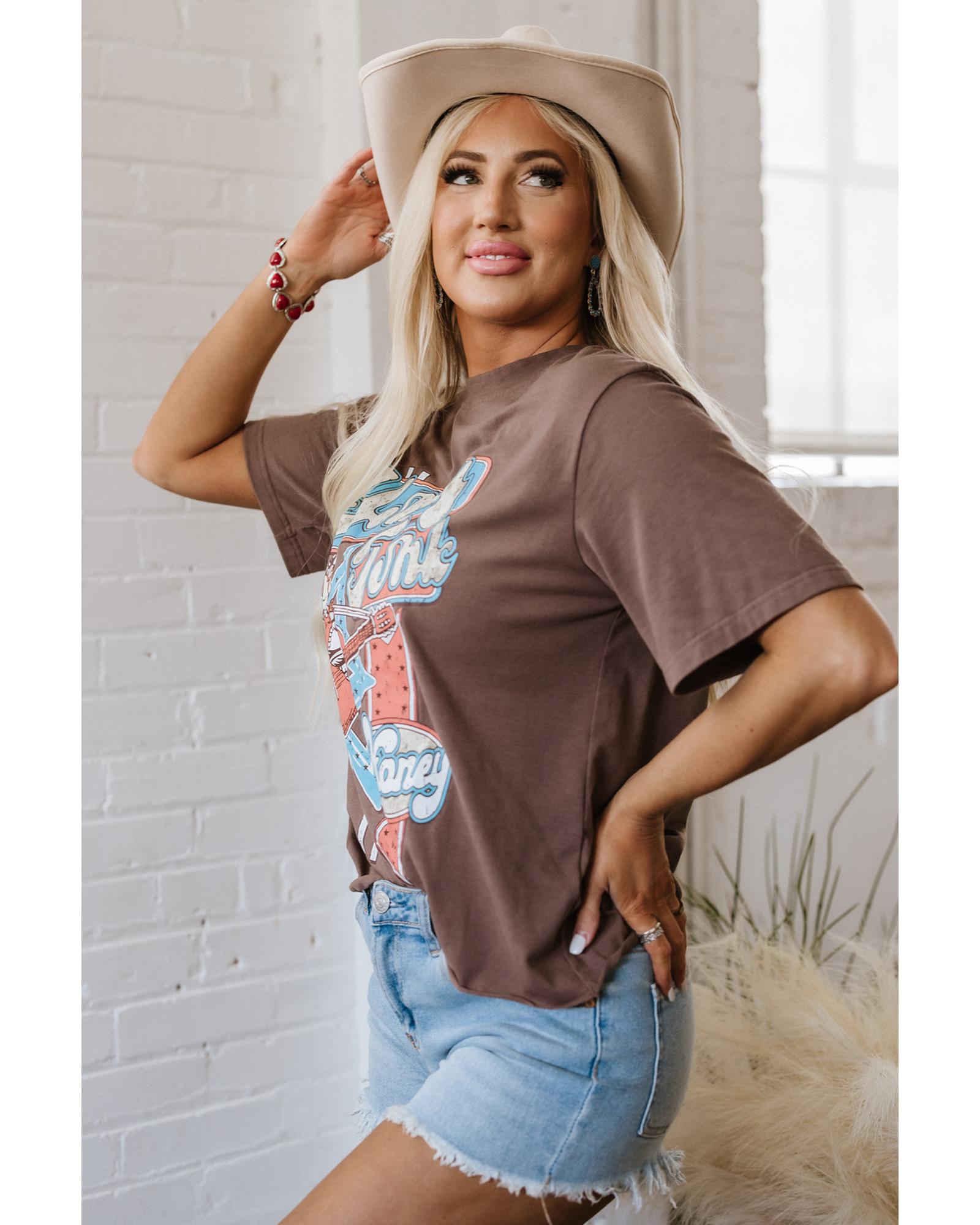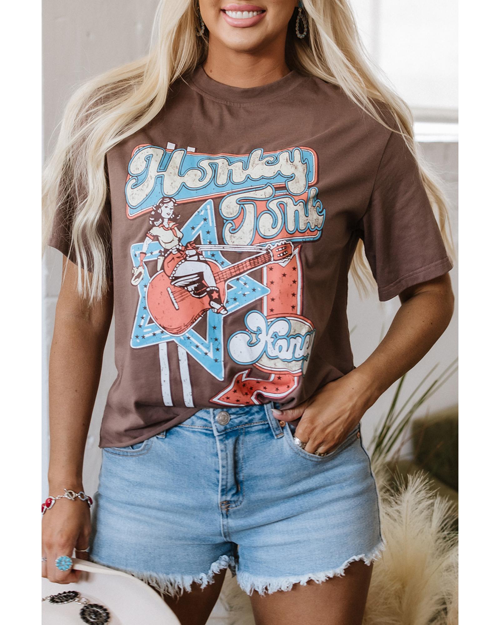 Chicory Coffee Honky Tonk Honey Graphic Crew Neck Western Fashion Tee – S