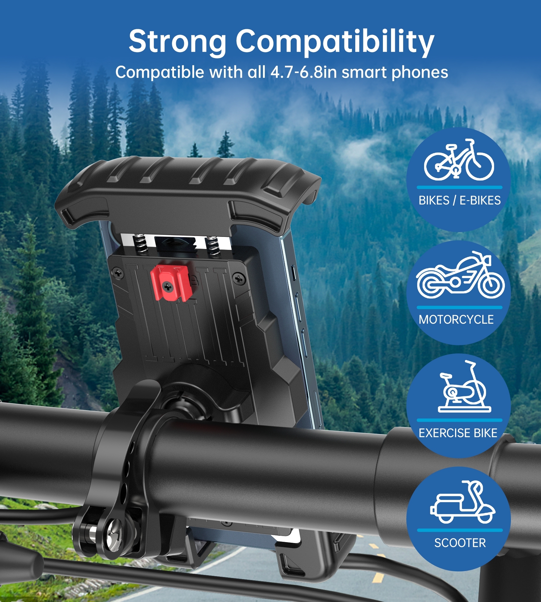 Compatible with all 4.7-6.8inchsmart phones like iPhone 14, iPhone 14 plus,iPhone 14 Pro, iPhone 14 Pro Max, Huawei, Nexus and other Android, iOS cell Phone .Fit Handlebar diameter:0.6-1.18inch.