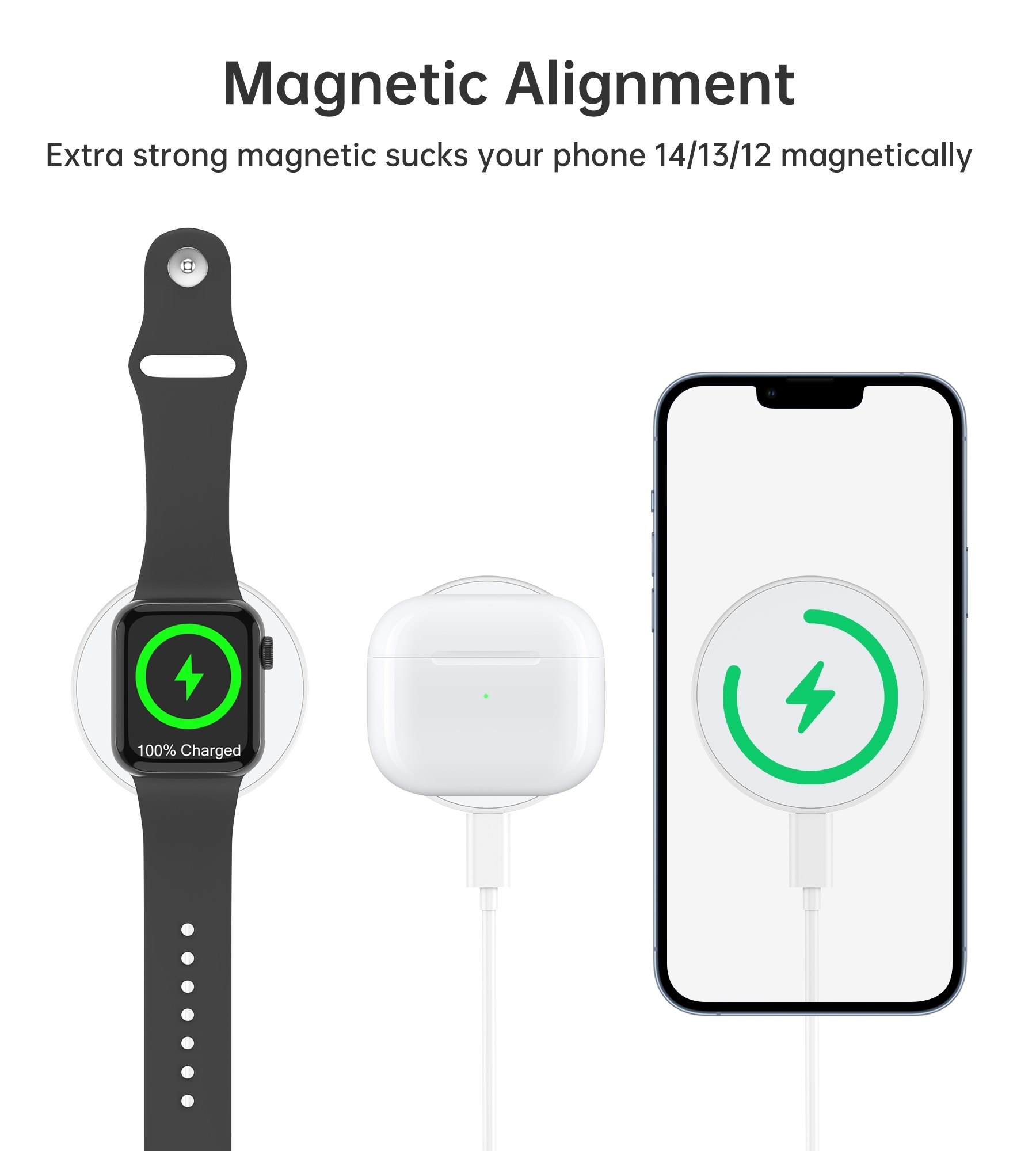 CHOETECH T588-F-WH 3-in-1 Foldable Fast Wireless Charger for Phone/Watch/Earphone
