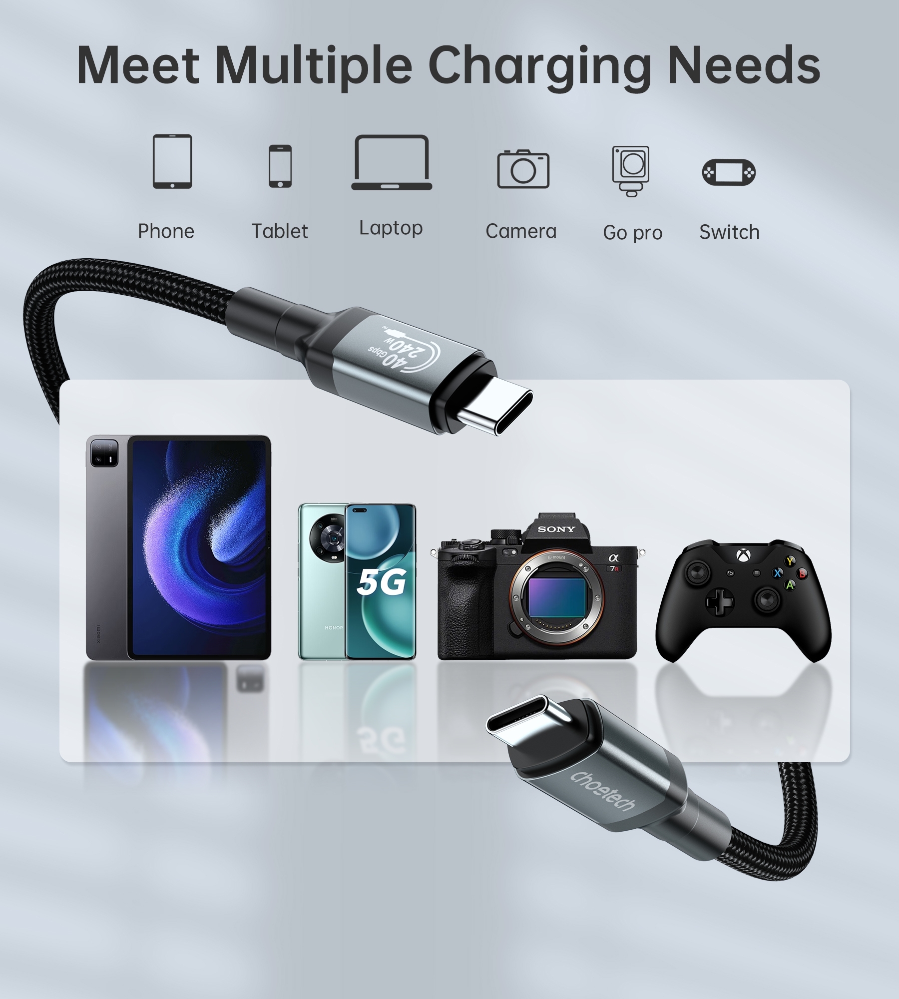 CHOETECH XCC-1042 Gen3.0 USB4.0 with 8K @ 60hz Video & Audio 240W USB-C to C Braided Cable 2M