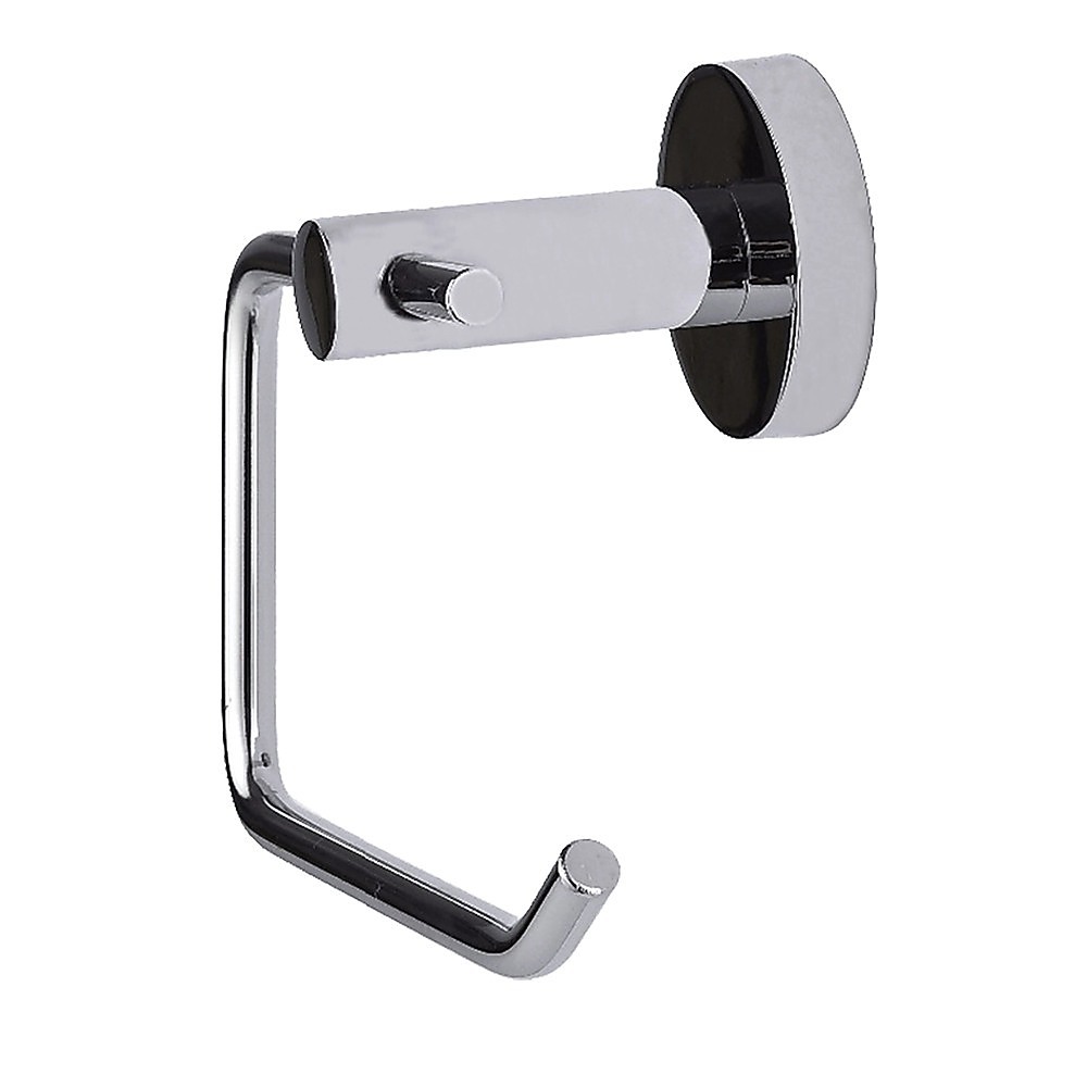 This toilet paper holder has a brilliant chrome finish. A simple hook design keeps the toilet paper on the holder without the need for a spring roller. A modern sleek design is built to last and updates any bathroom.