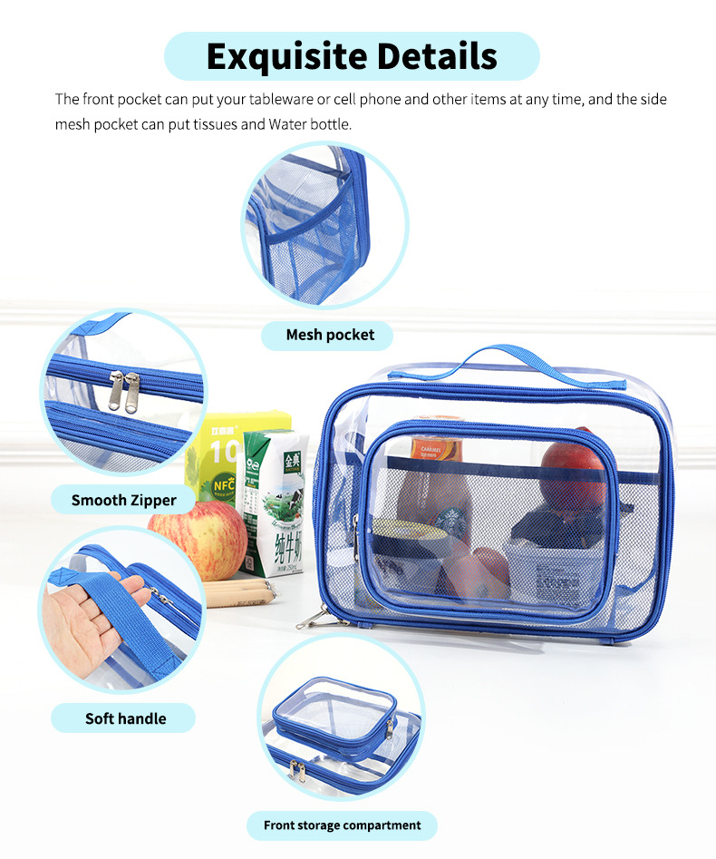 This clear PVC tote bag with a top handle is the perfect companion for events, travel, and daily activities. Designed to meet stadium and event security requirements, its transparent design makes it easy to access and find your items quickly. The durable mesh side panels provide ventilation, while the front zip pocket is ideal for storing smaller essentials like tickets, keys, or wallets.