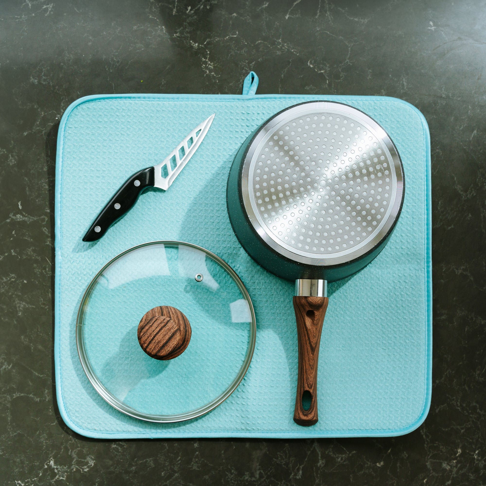 - Place your dishes on the mat after washing & let them air-dry