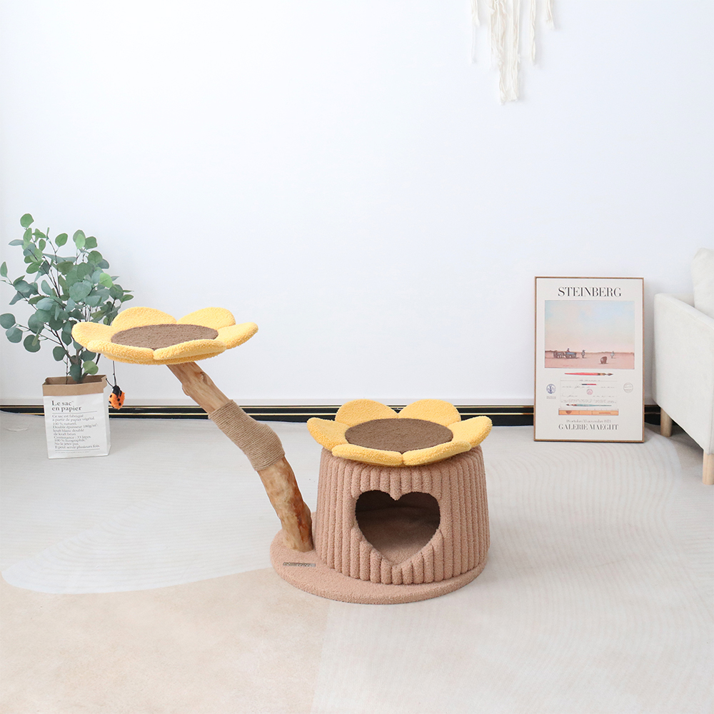 CMISSTREE Heart Shaped Cat House With Sunflower Cat Tree