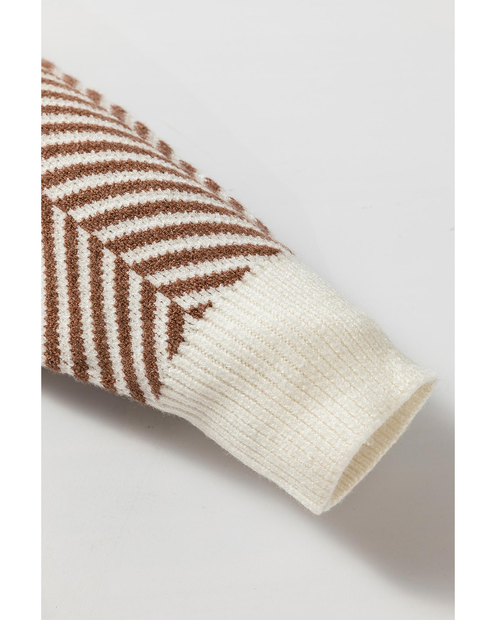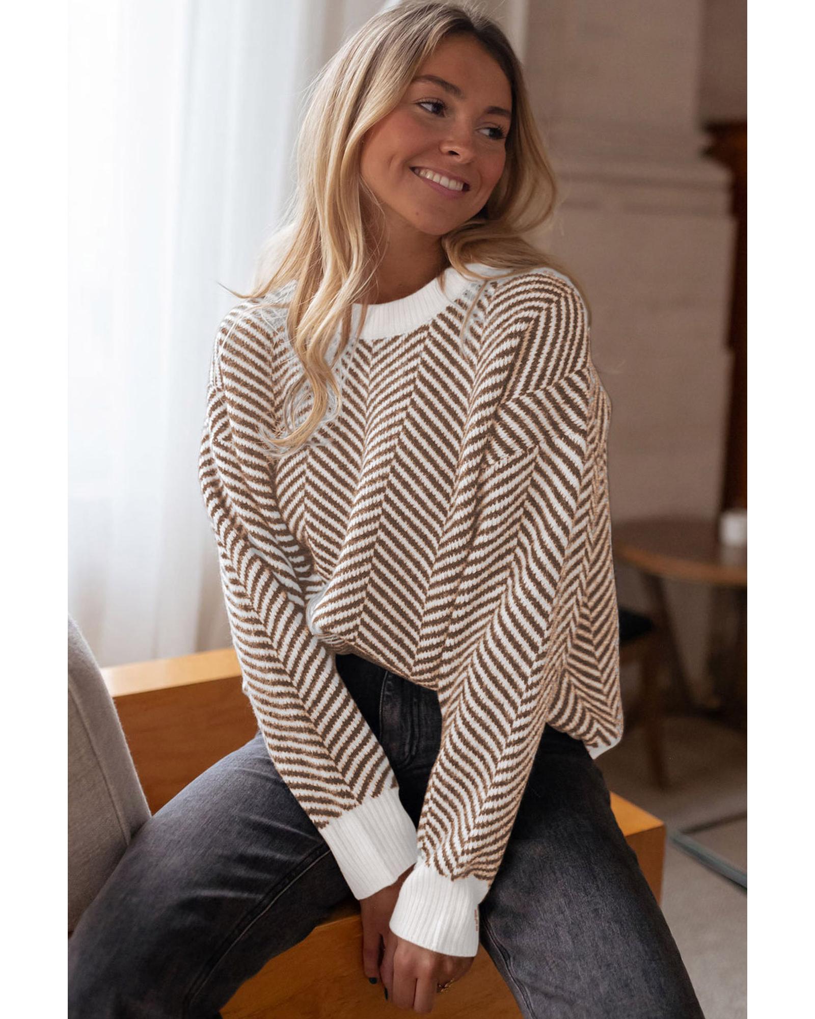 Coffee Contrast Edge Crew Neck Drop Shoulder Sweater – XL