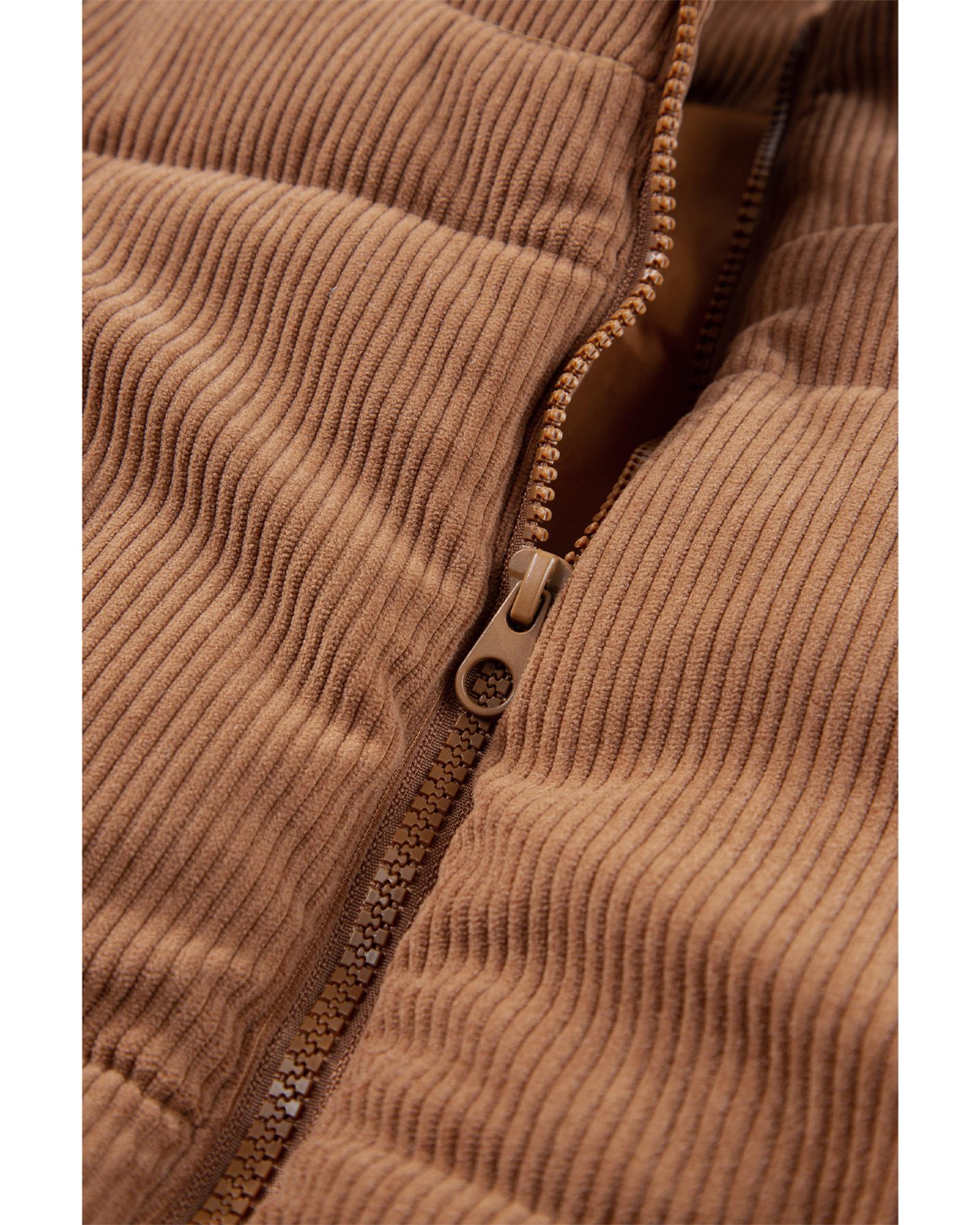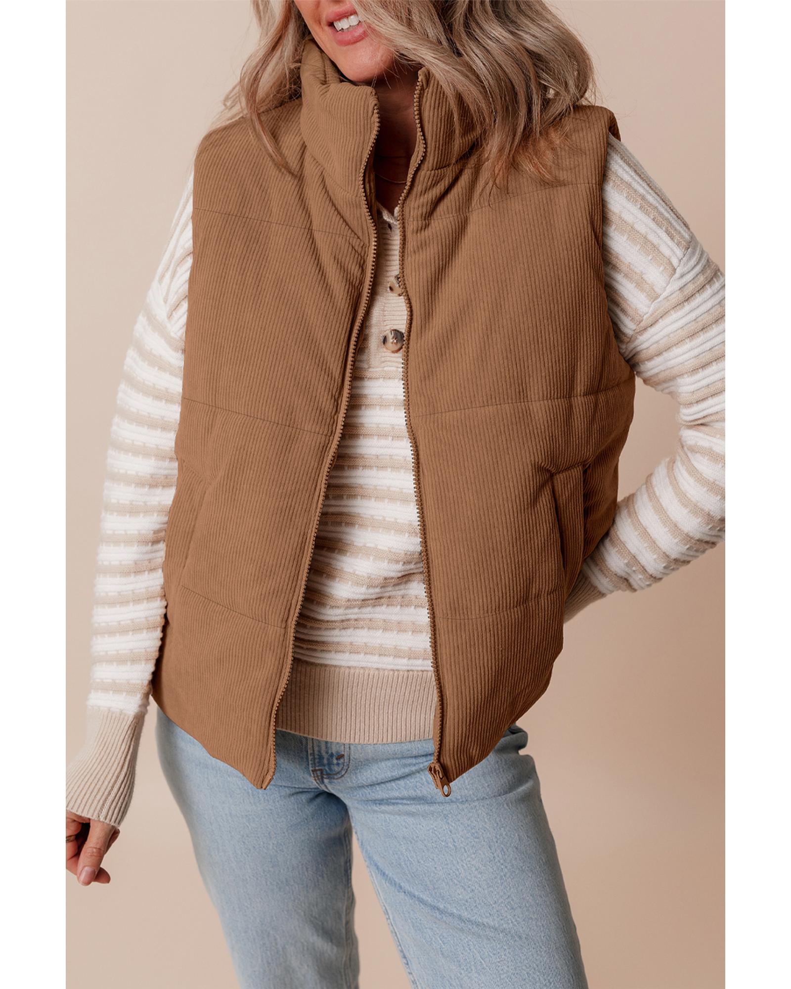 Coffee Corduroy Stand Neck Zipped Puffer Vest – XL
