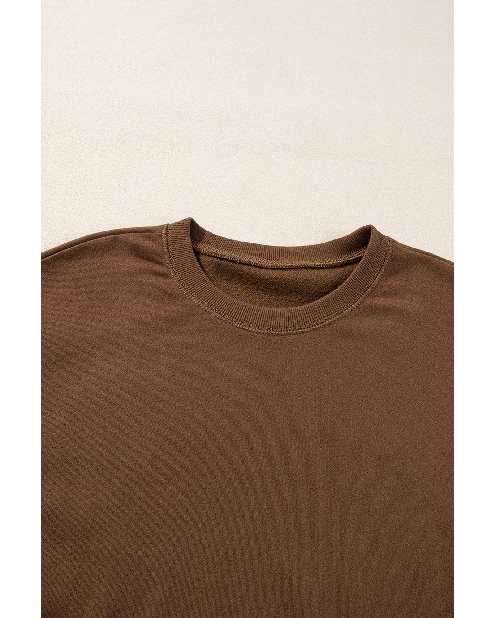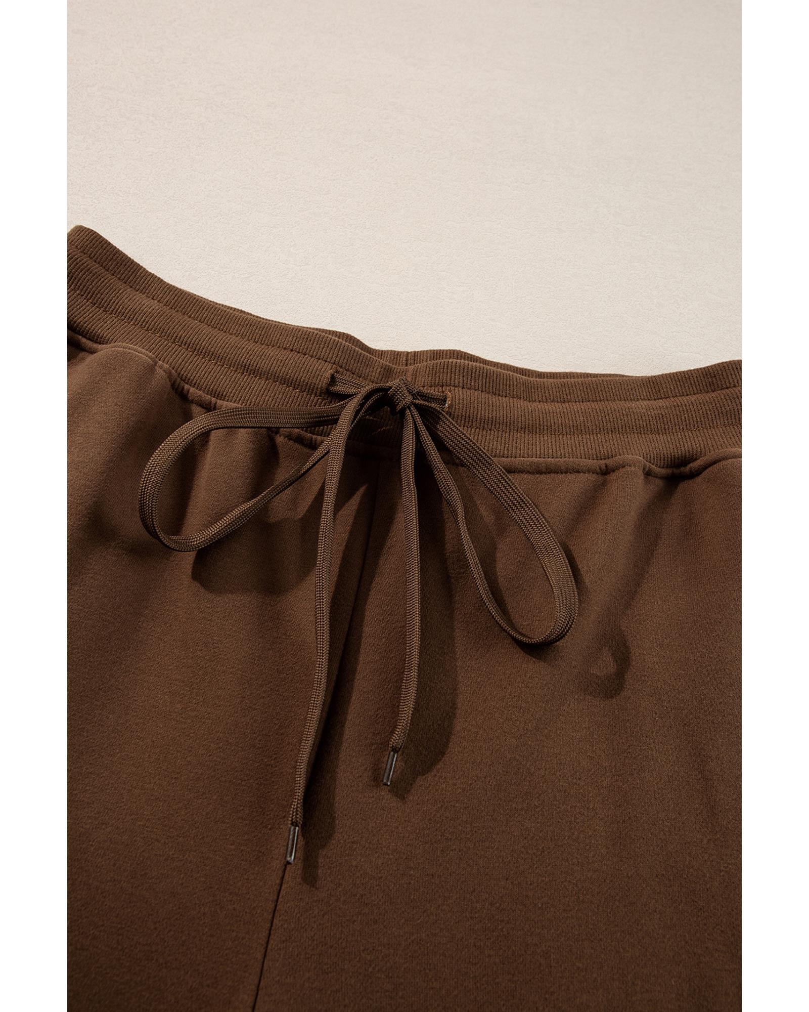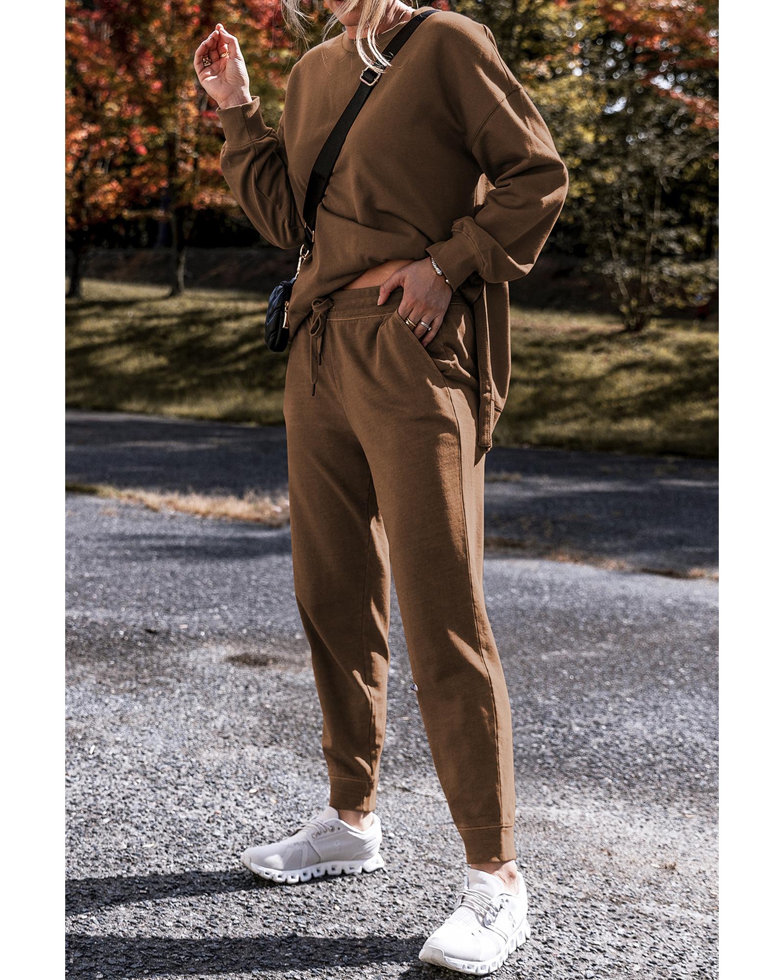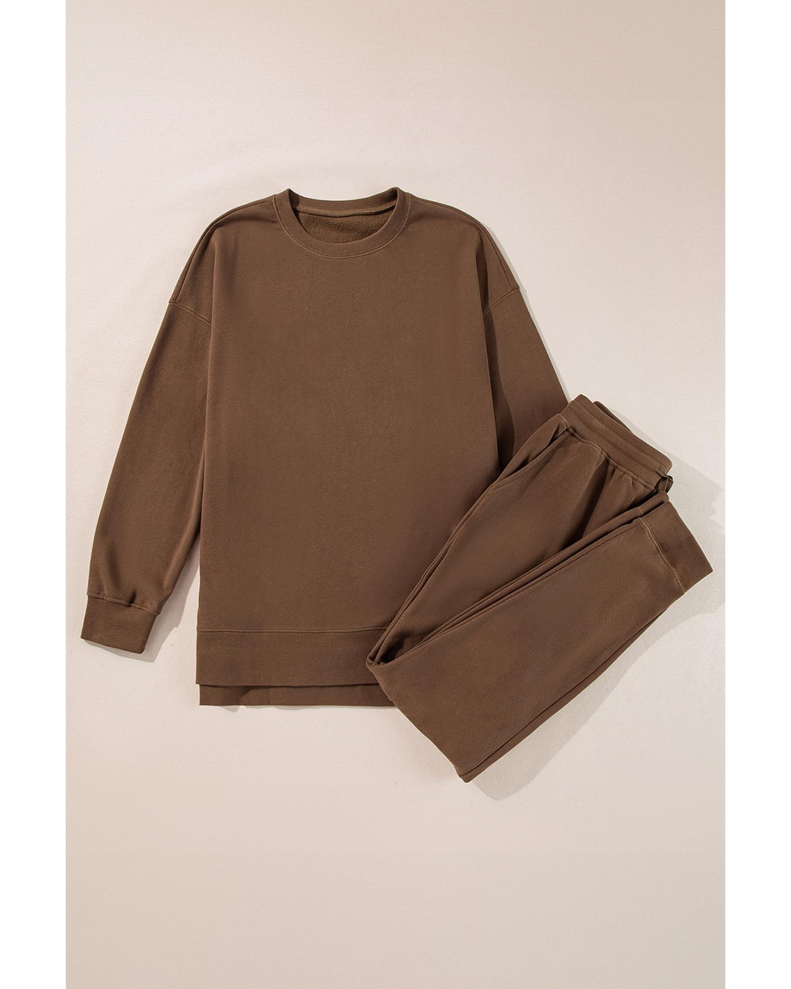 Coffee Solid Color High Low Pullover and Skinny Pants Set – M