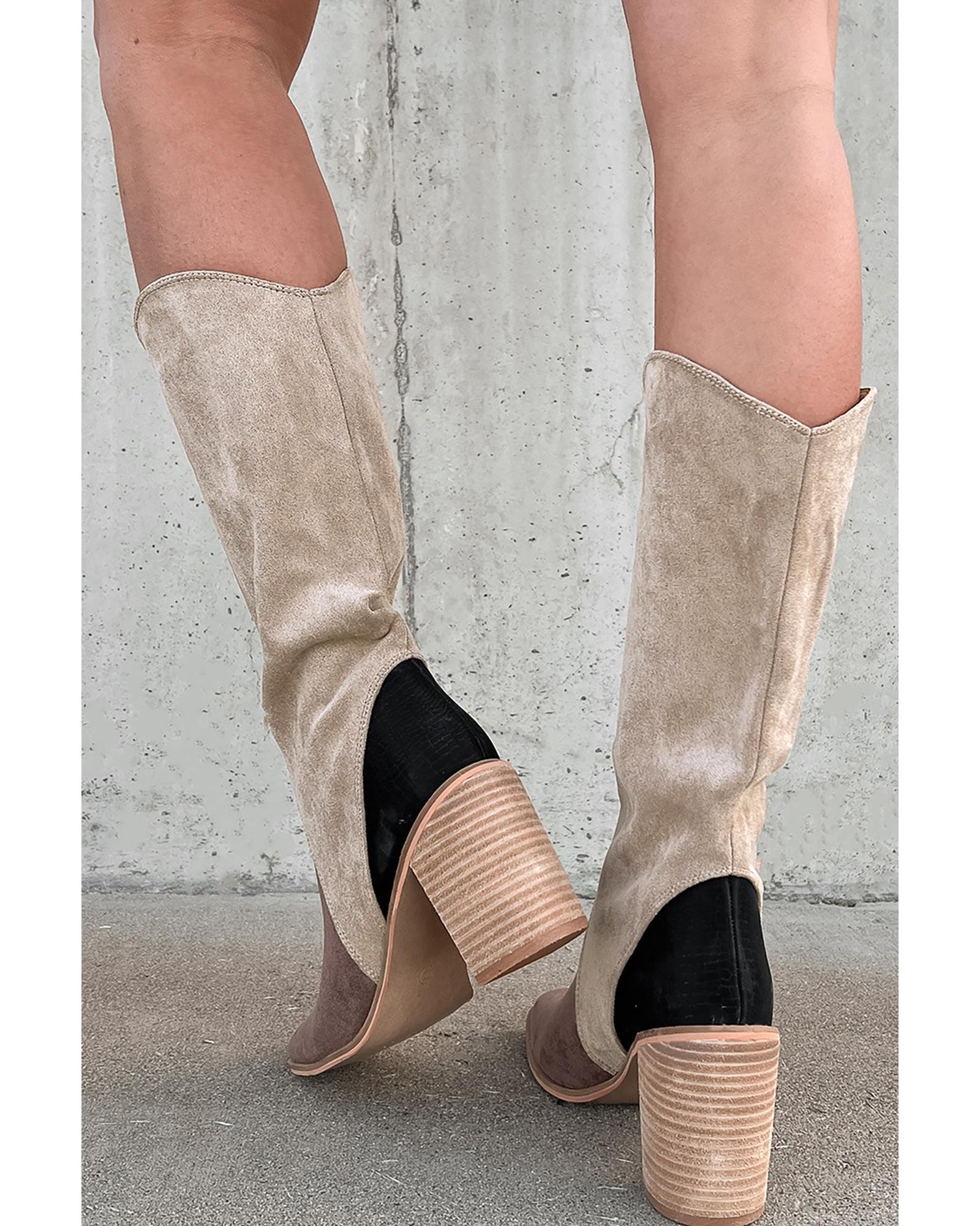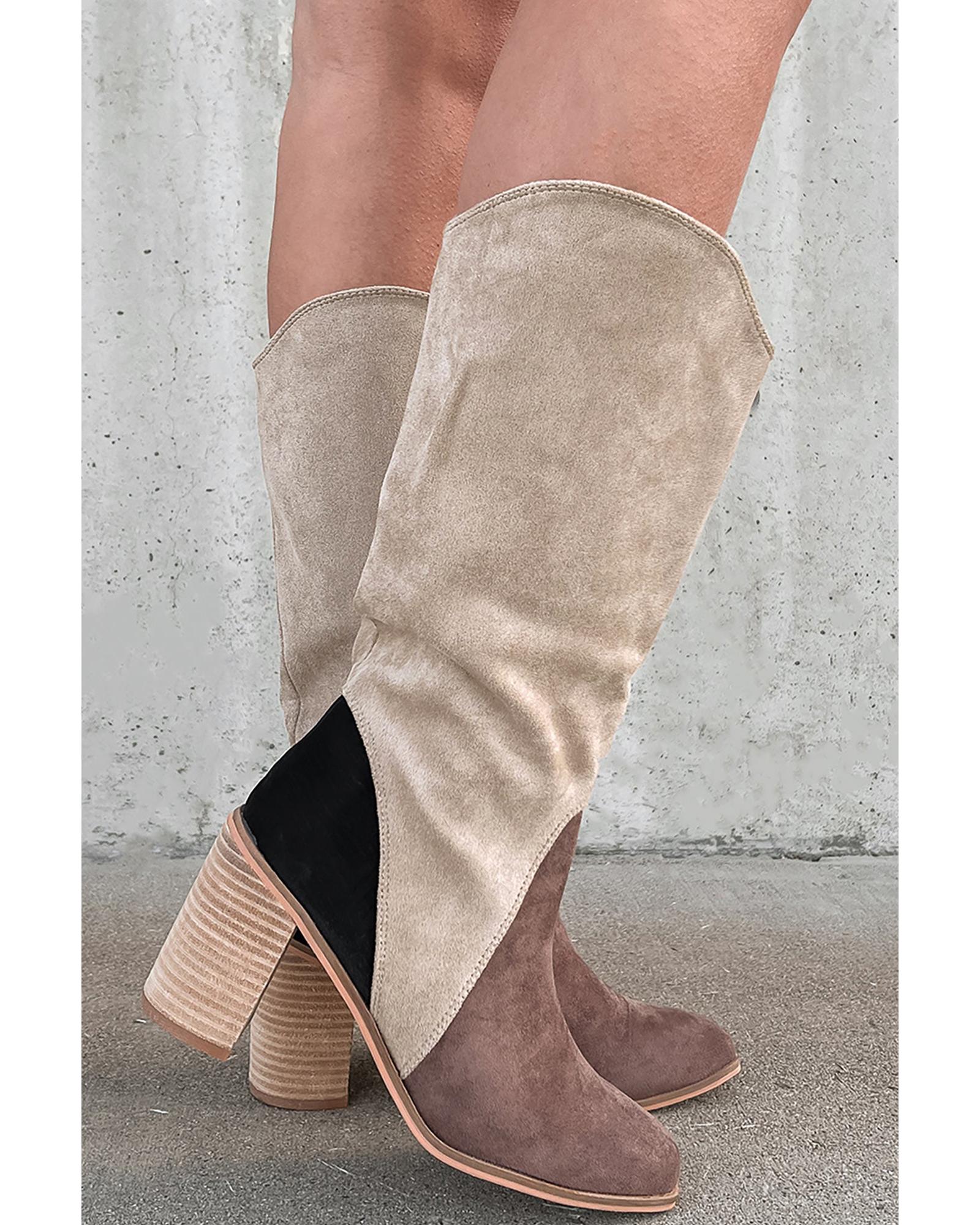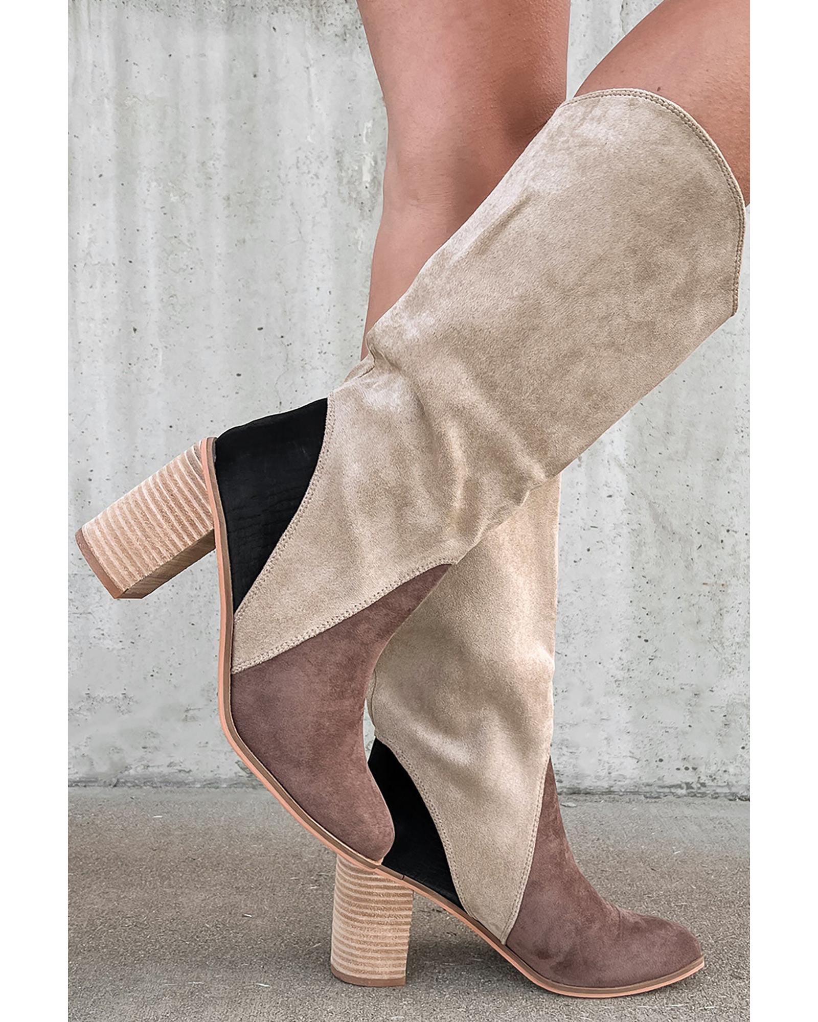 Coffee Suede Calf Length Chunky Heel Boots – 37 EU